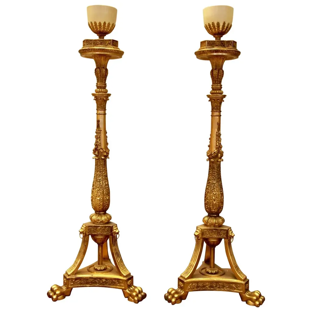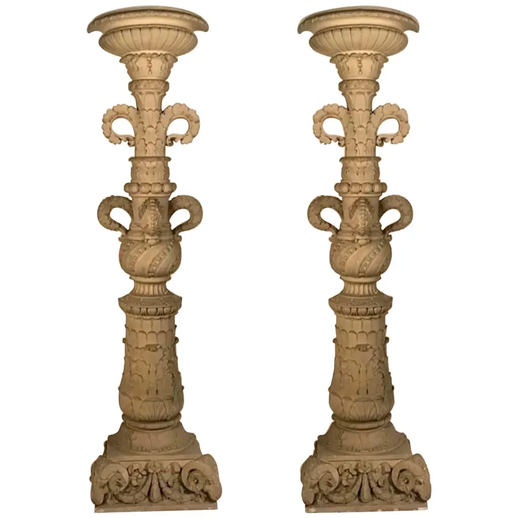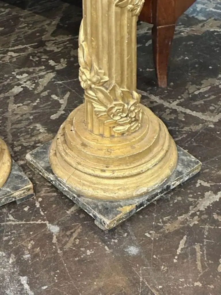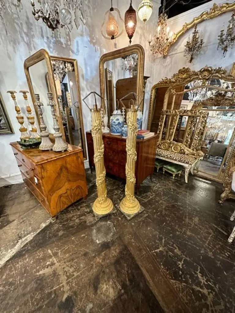 Antique Pair Of Italian Carved And Giltwood Columns As Floor Lamps