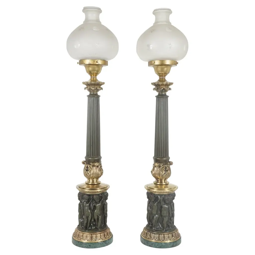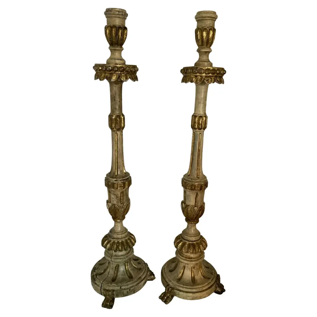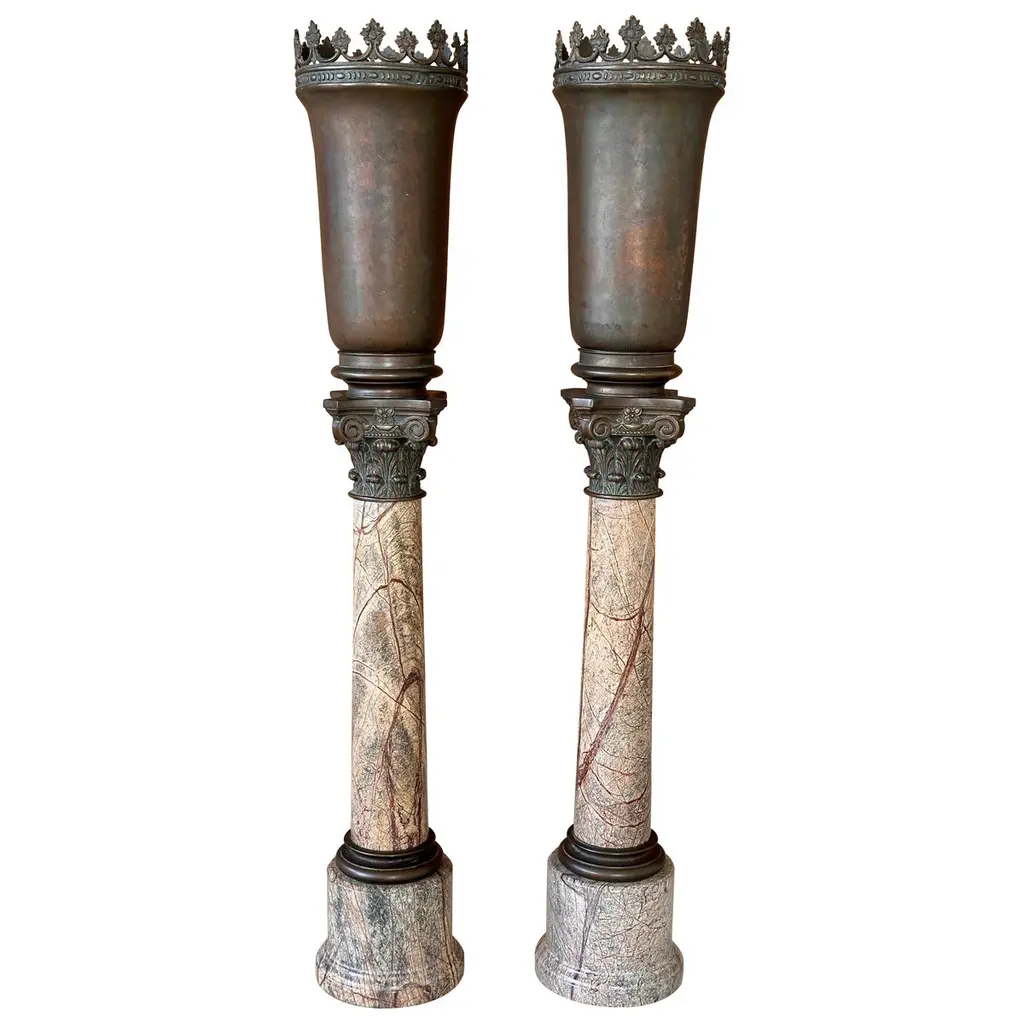 Antique Pair Of Italian Carved And Giltwood Columns As Floor Lamps