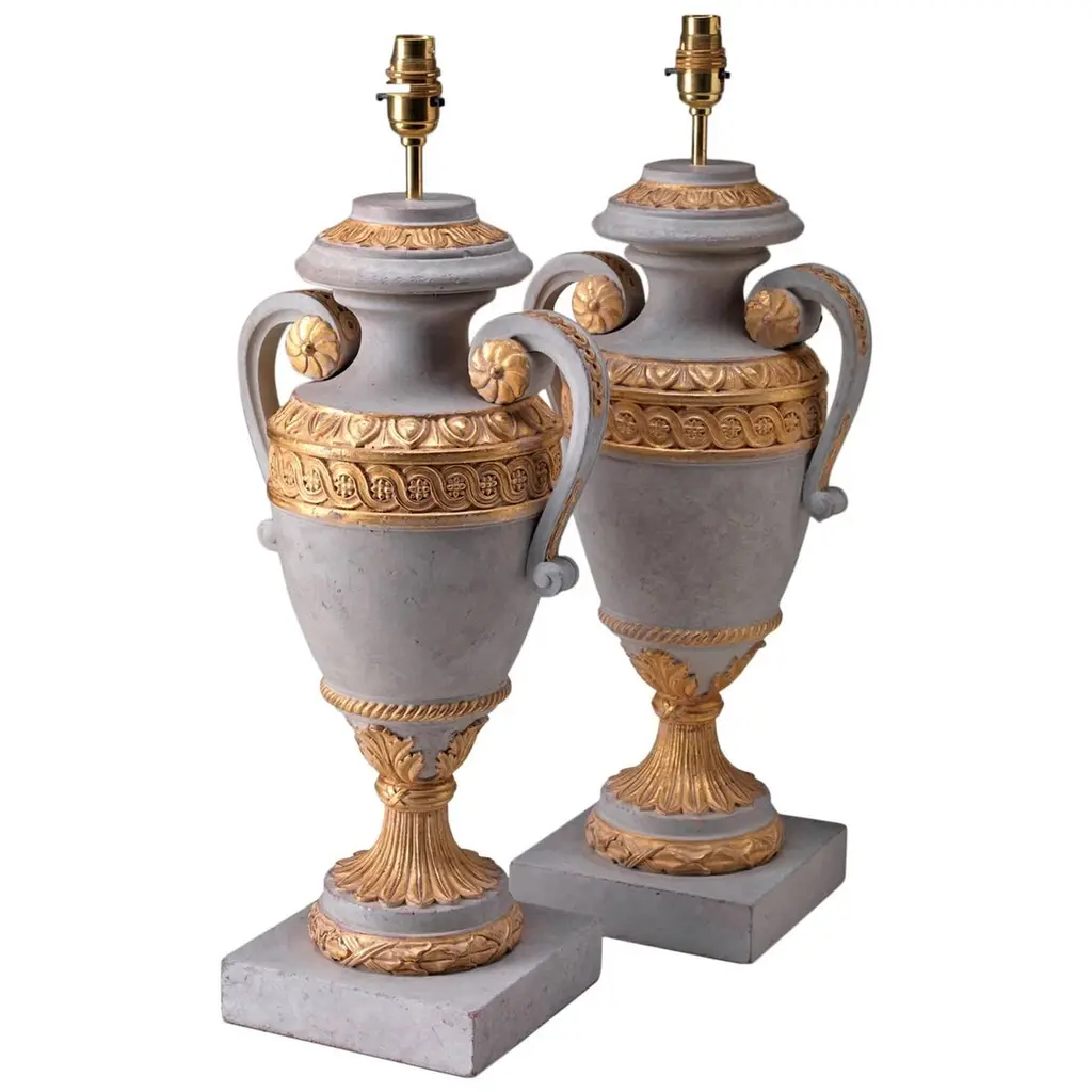 Handsome pair of 19th century Italian carved and giltwood columns made into floor lamps. These are very large scale and make an elegant statement. Lovely!!