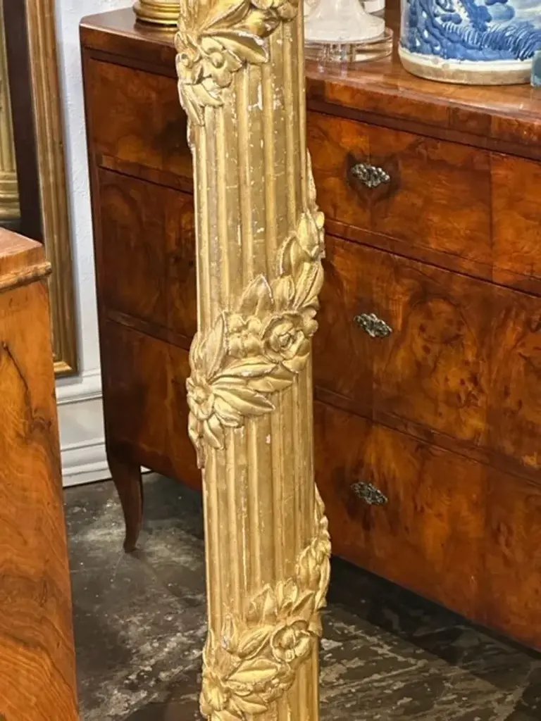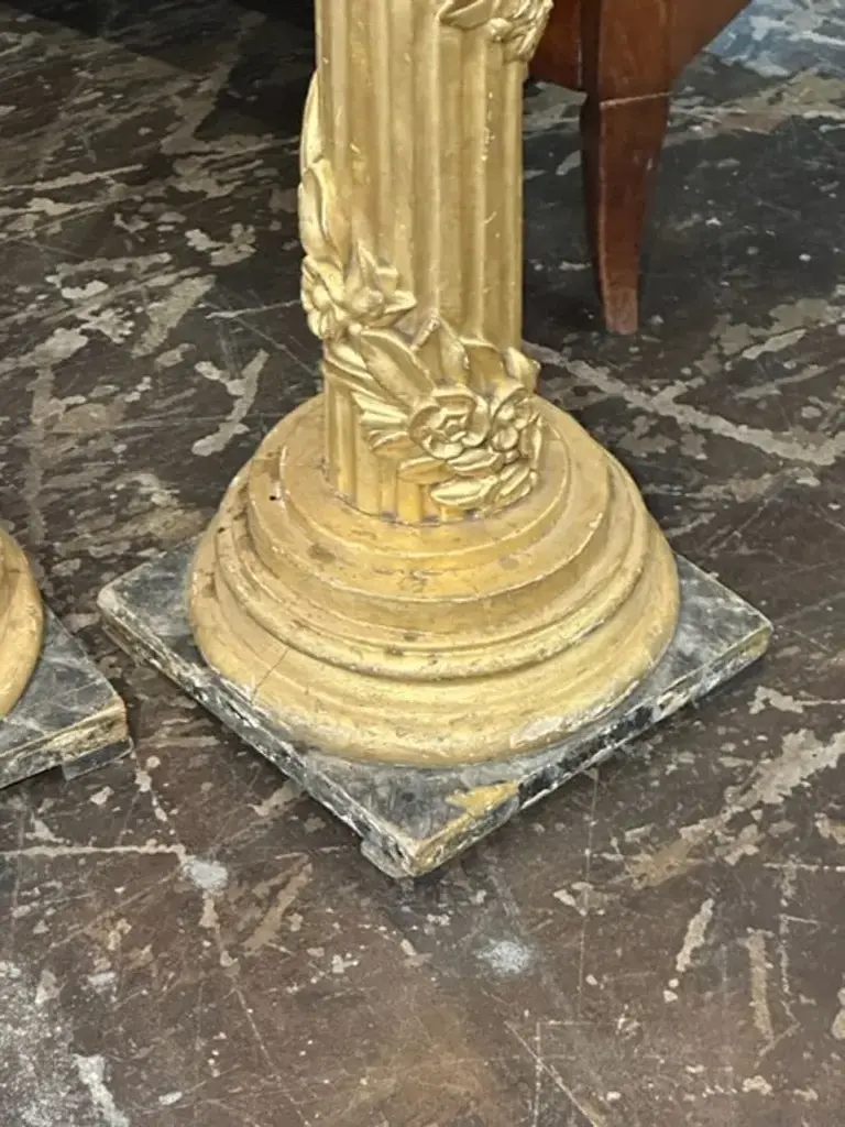 Antique Pair Of Italian Carved And Giltwood Columns As Floor Lamps