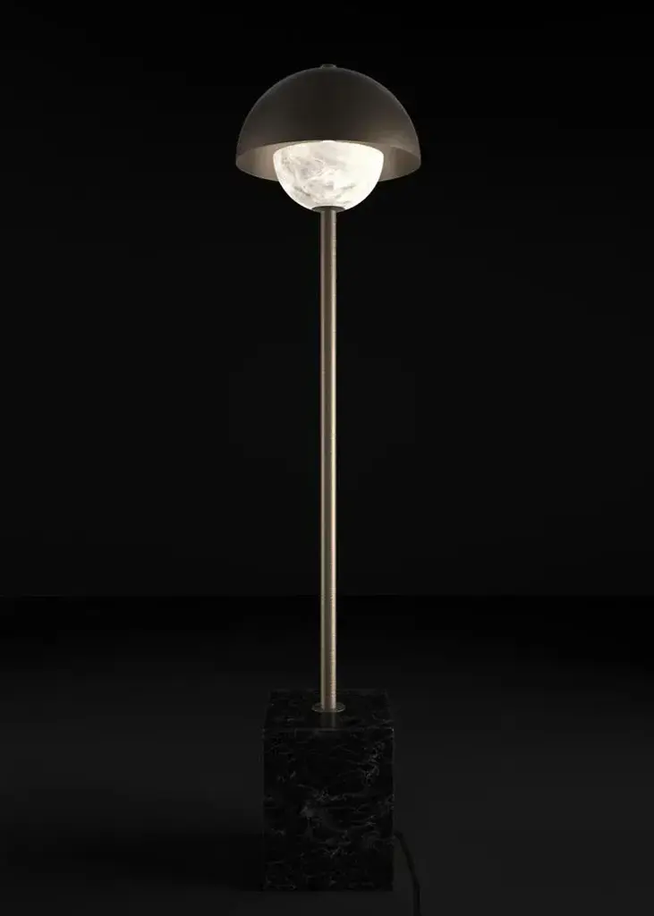 Apollo brushed burnished metal floor lamp by alabastro italiano dimensions: d 30 x w 30 x h 130 cm. Materials: white alabaster, nero marquinia marble, black silk cables and metal. Available in different finishes: shiny silver, bronze, brushed brass, ruggine of florence, brushed burnished, shiny gold, brushed black, freedom green, shiny black and copper. alabaster domes of various diameters and tubular elements of different widths give dynamism to this exclusive piece while maintaining a perfect balance of style. Named apollo in honour of the greek god who pulled the chariot of the sun, the serie is inspired by this peculiarity; a metal structure pulls a series of luminescent half spheres. up to 250v (europe/uk standard).