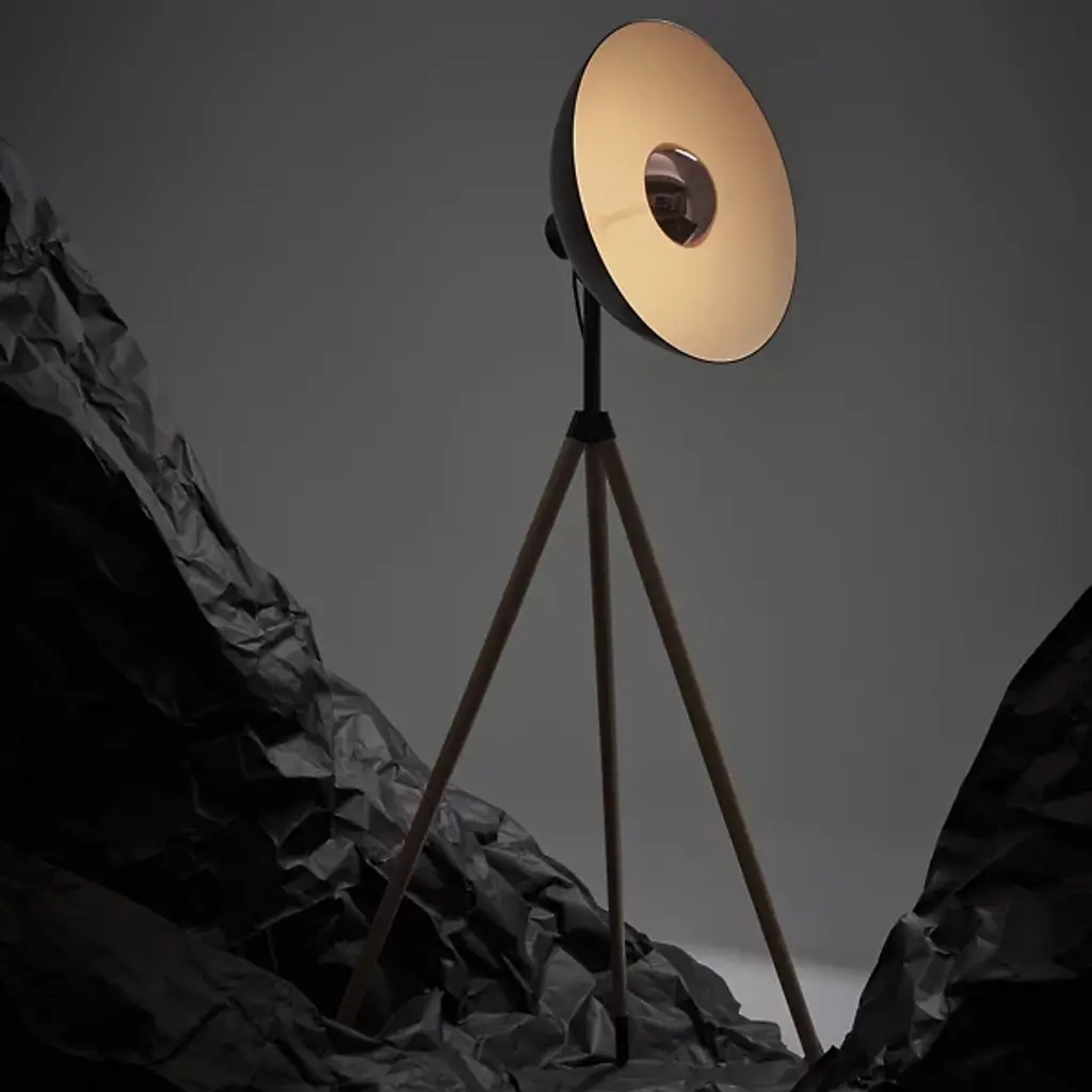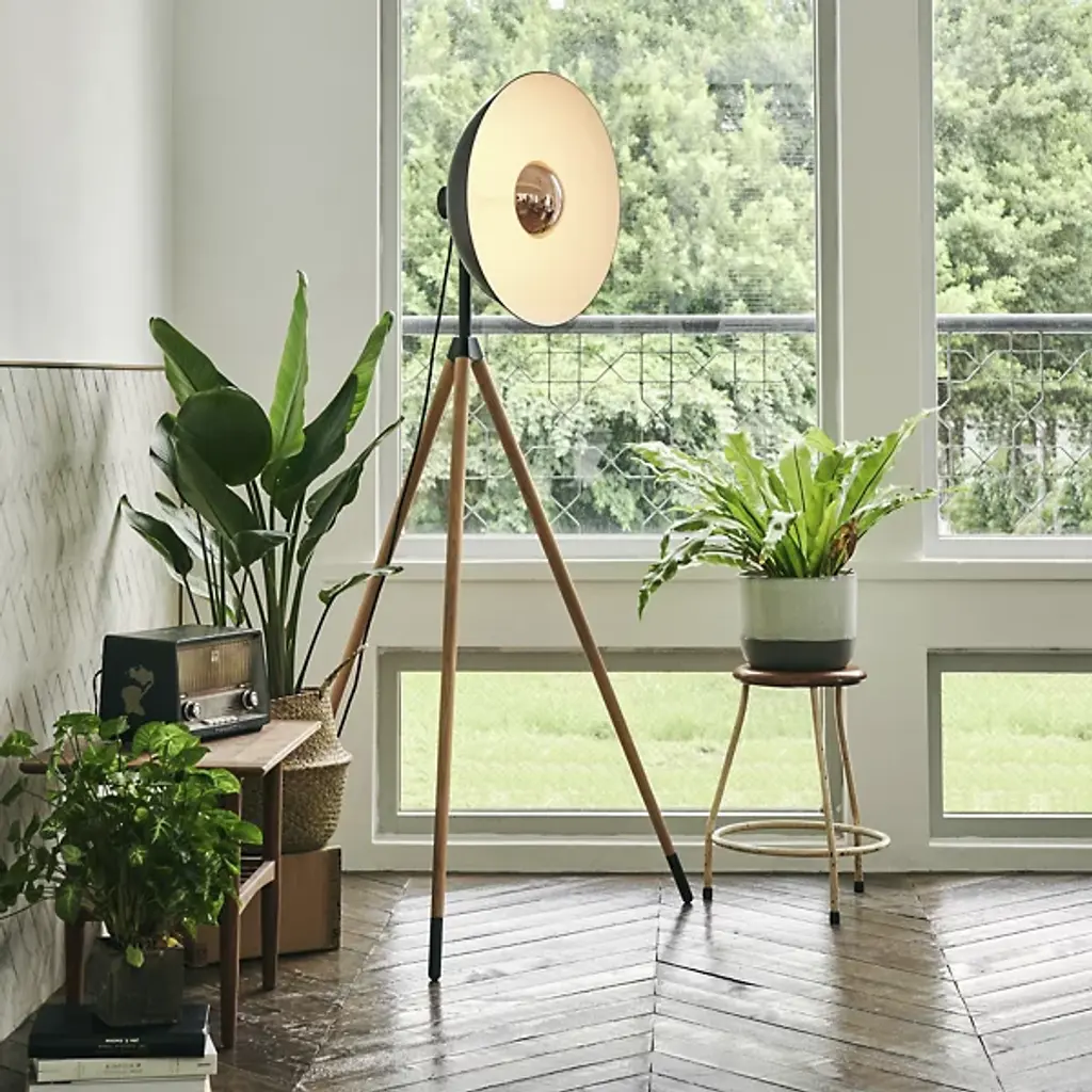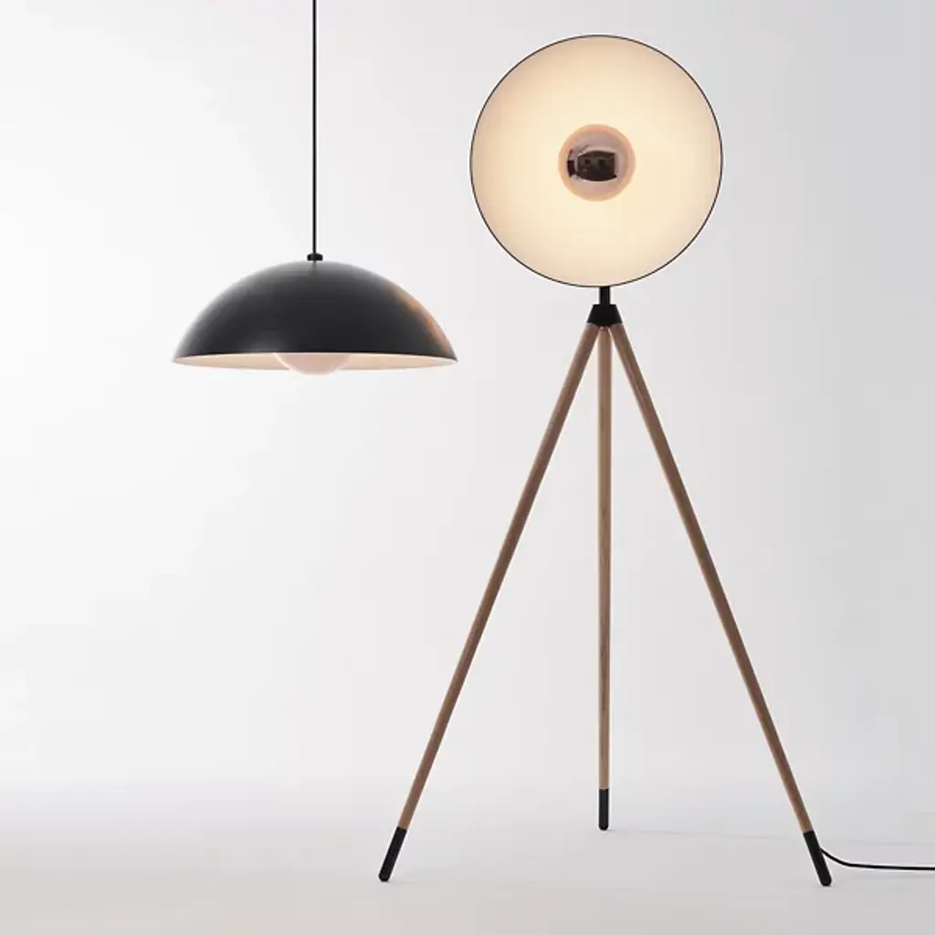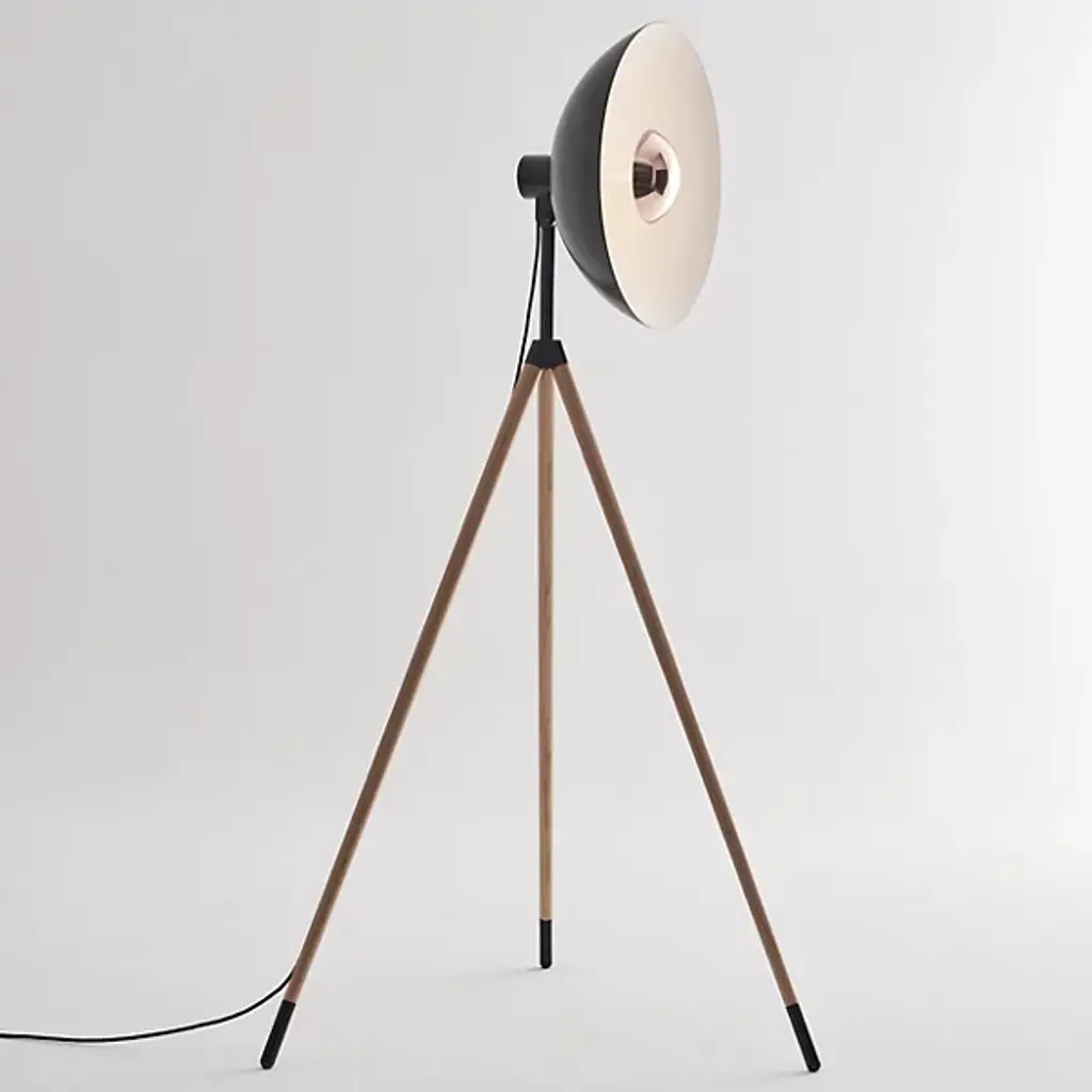 Elegant studio-style lighting for the home. The Apollo LED Floor Lamp from Seed Design elevates a space’s aesthetic through a unique tripod design and bold lines. A domed aluminum head stands atop three slender legs made of natural oak wood. Its LED light emanates from a sleek metal housing to wash over the shade’s white interior and fill the room. Timeless style and lasting light make this fixture a standout addition to the modern home.