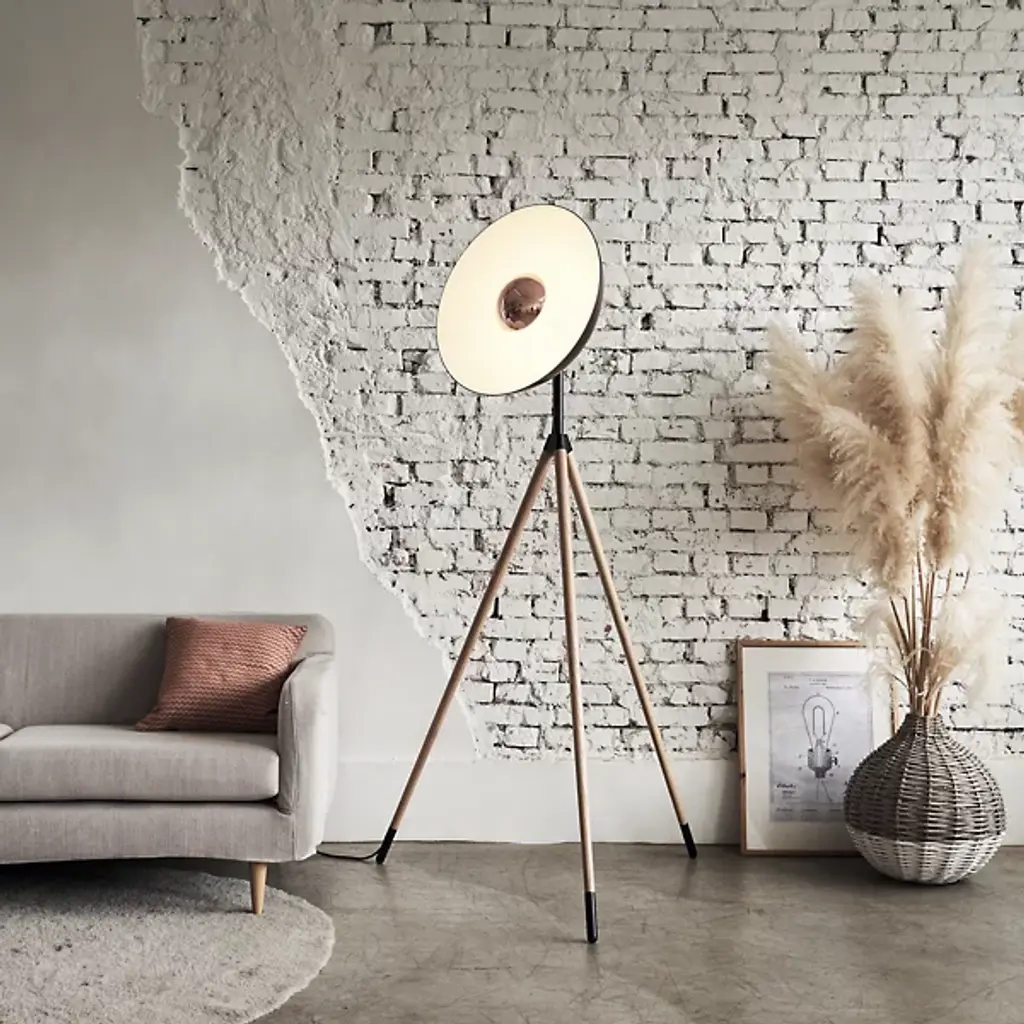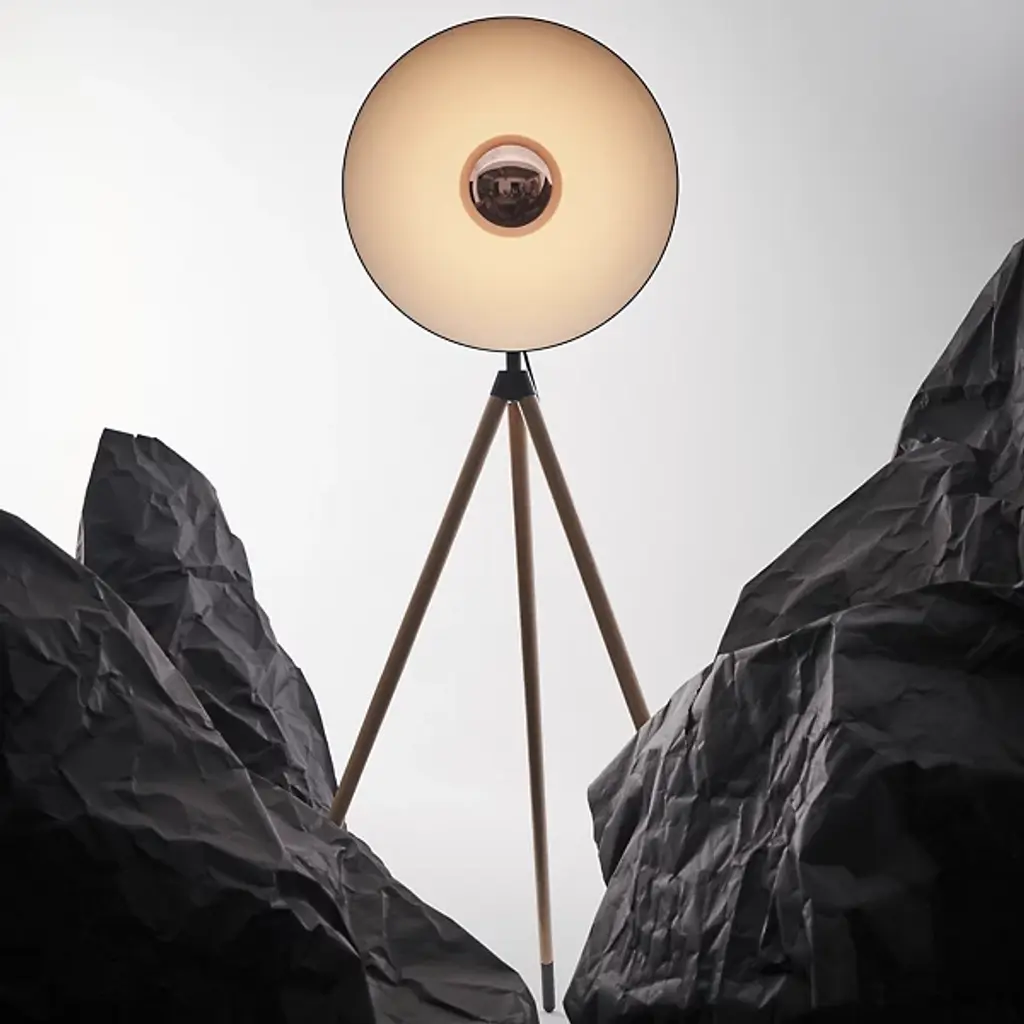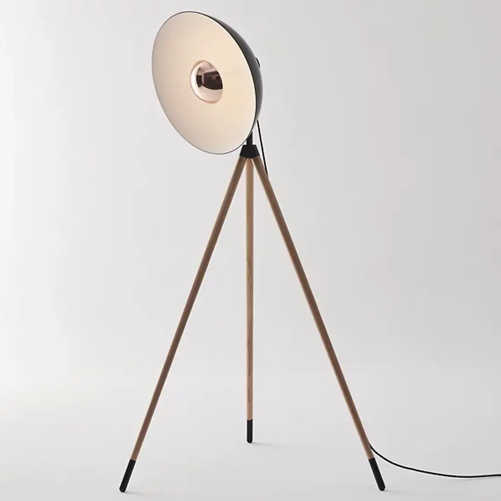 Elegant studio-style lighting for the home. The Apollo LED Floor Lamp from Seed Design elevates a space’s aesthetic through a unique tripod design and bold lines. A domed aluminum head stands atop three slender legs made of natural oak wood. Its LED light emanates from a sleek metal housing to wash over the shade’s white interior and fill the room. Timeless style and lasting light make this fixture a standout addition to the modern home.