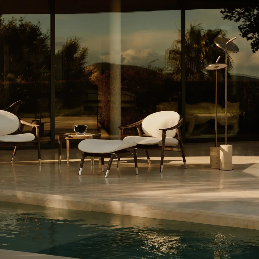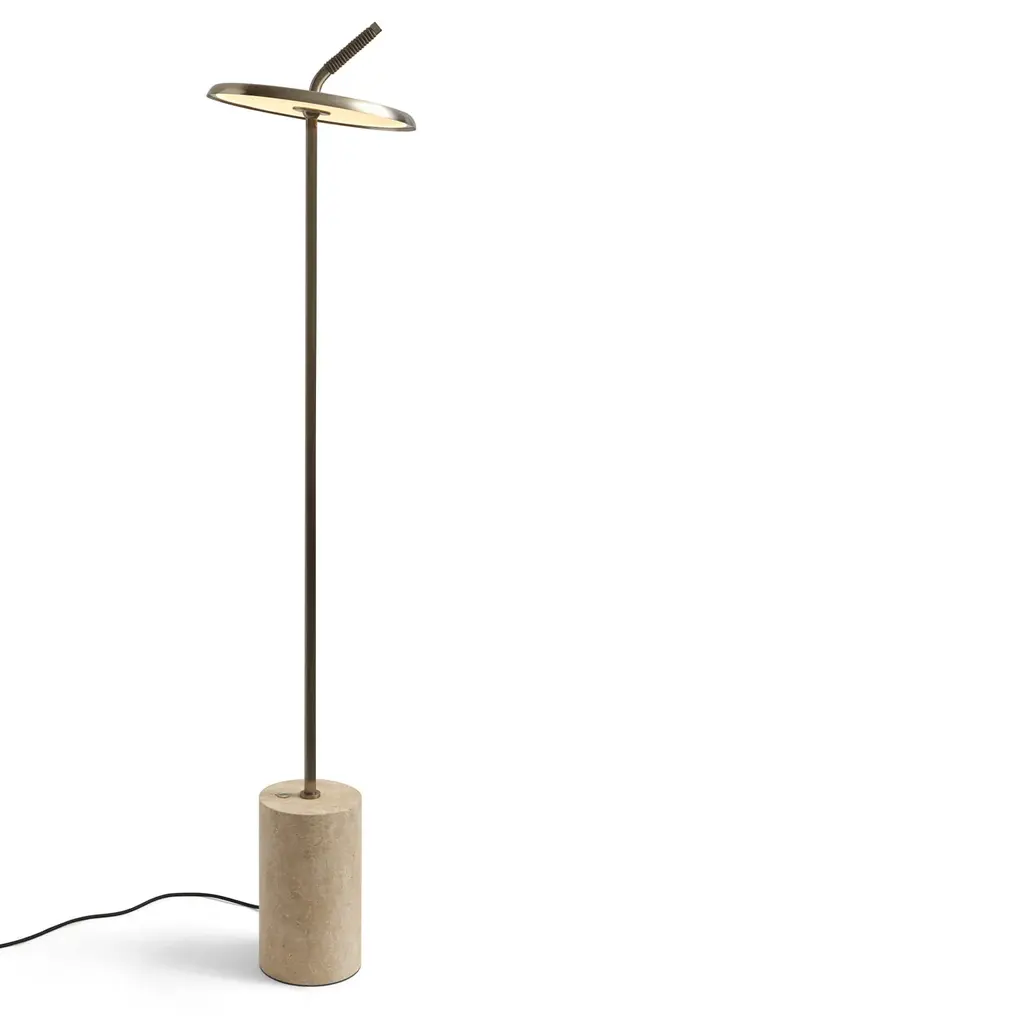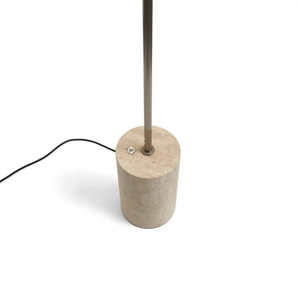 The Apple Beige outdoor floor lamp combines modern elegance with functionality. Featuring an LED light, its main structure is crafted from satin stainless steel, complemented by a luxurious Travertine marble base. The handle is upholstered in premium leather, adding a refined touch to this sophisticated design, perfect for elevating any outdoor space.