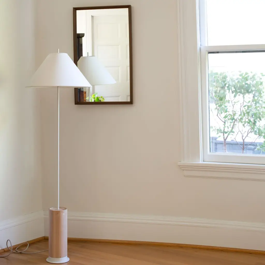 A minimal yet elegant classic. The Arbor Floor Lamp elicits a contemporary and bright feel while keeping a petite footprint, allowing for flexible use in smaller spaces. Perfect in both vividly colorful, or more modern and neutral abodes, the soft brightness that streams through this lamp’s eggshell linen shade is sure to cast a favorable glow throughout your home. Hand-crafted in our Portland, Ore. factory using ethically sourced domestic and global components. A Schoolhouse Original.
