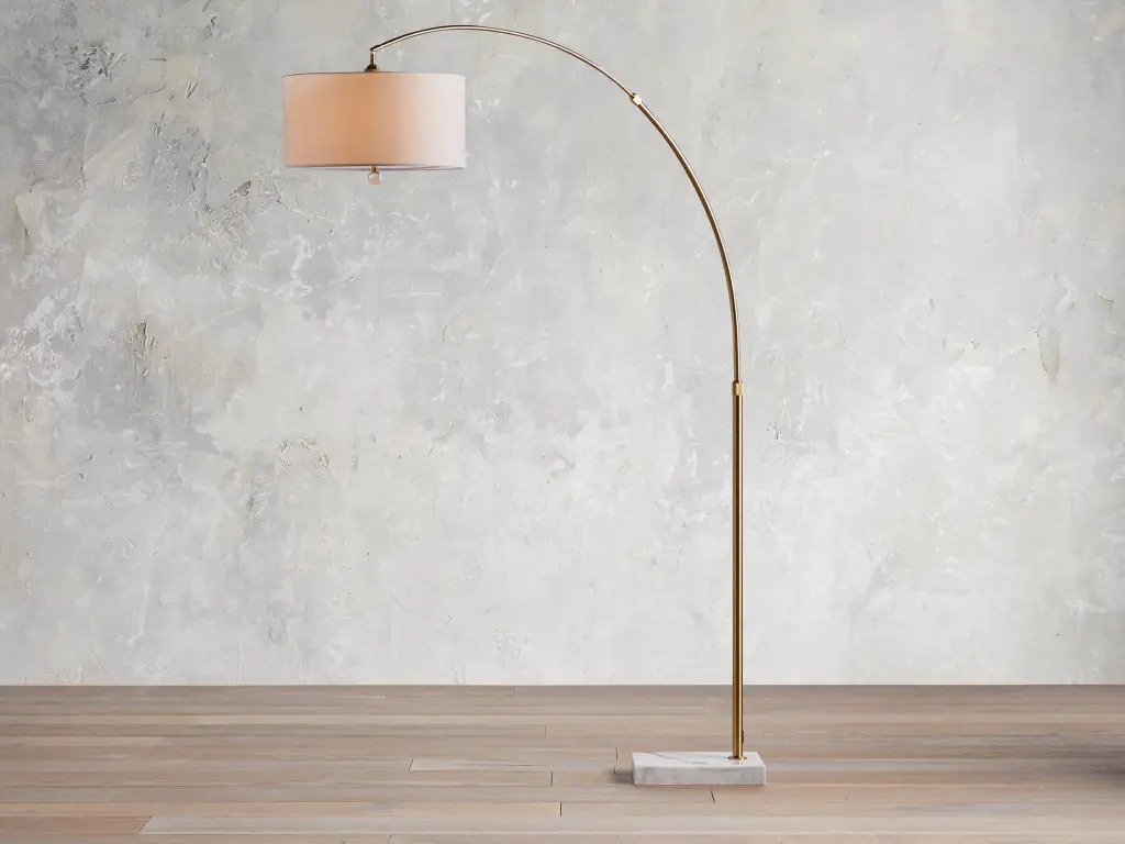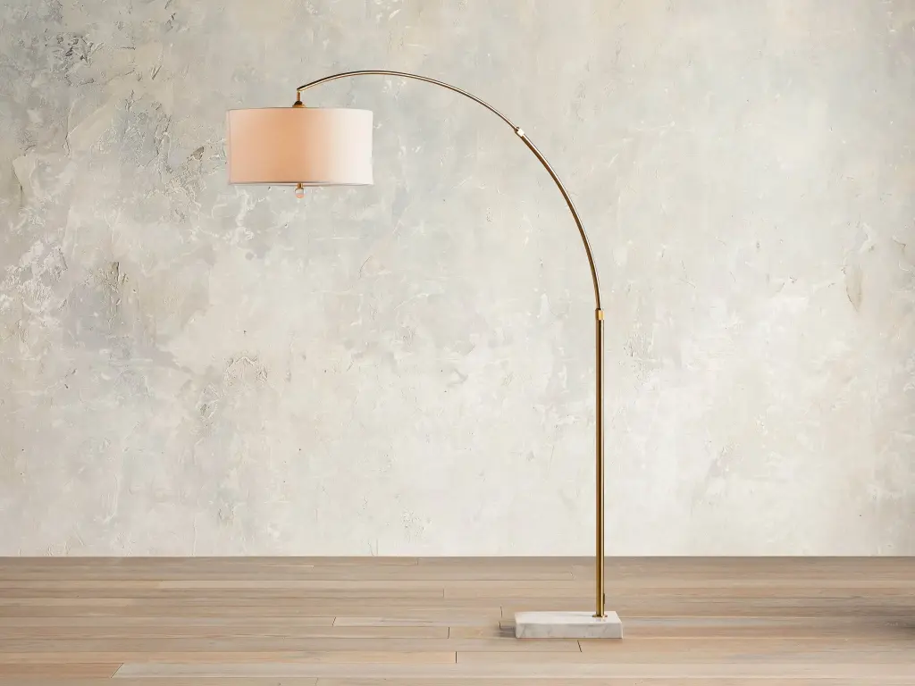 Featuring a dramatic arched silhouette, our Arc Lamp collection is designed to make a statement in any living space. Anchored by a natural marble base, Arc's warm metallic finishes feature hand-painted accents for an extra-special touch.