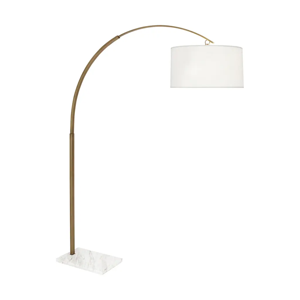 The Archer Floor Lamp from Robert Abbey combines sleek modern design with organic lines to enhance any living room or bedroom. Its white Brussels linen shade softly diffuses light, creating a warm and inviting atmosphere perfect for relaxing or reading. This elegant lamp complements contemporary and transitional decor styles, adding a refined touch that elevates your home’s overall aesthetic. Highlights