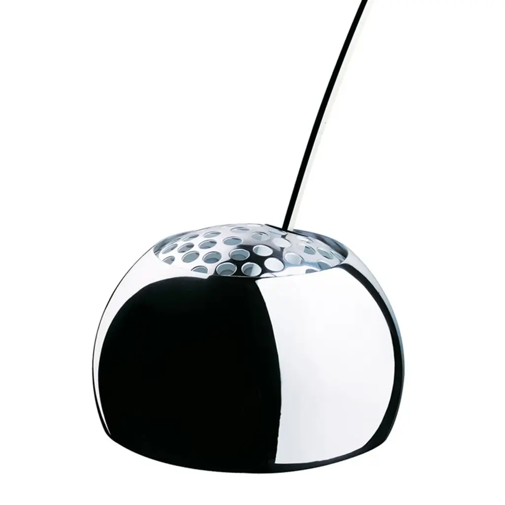 This lamp is ready for its close-up: Featured in Hollywood classics including Diamonds are Forever and The Italian Job, the Arco is a design icon that has been in constant production since its debut in 1962. The famed Castiglioni brothers spared no detail when they created it, from the beveled corners of its genuine Carrera marble base (designed not to hurt should you brush against them) to the strategic hole that allows for easy lifting of the base.The base supports a spun aluminum reflector via a curved stainless steel adjustable stem, allowing the lamp to offer both direct and indirect light. The height extends to almost 7-feet, allowing for easy placement of a couch or table underneath.The finish is stainless steel. The Arco floor lamp is available in LED or incandescent.