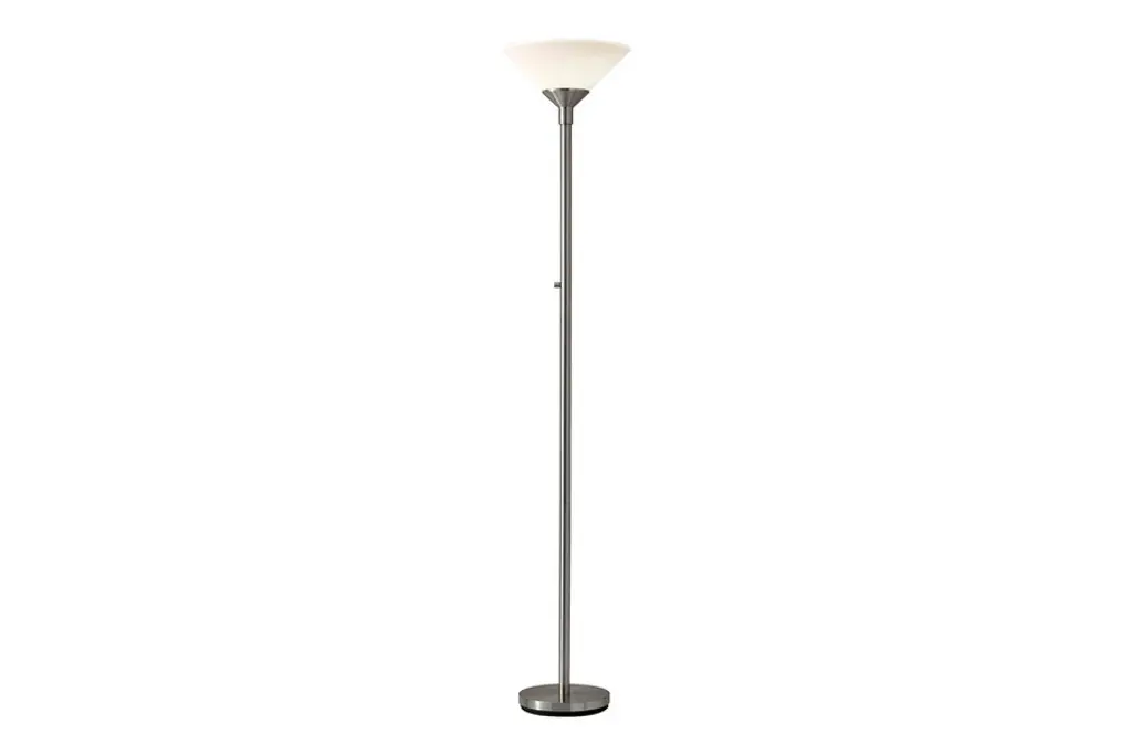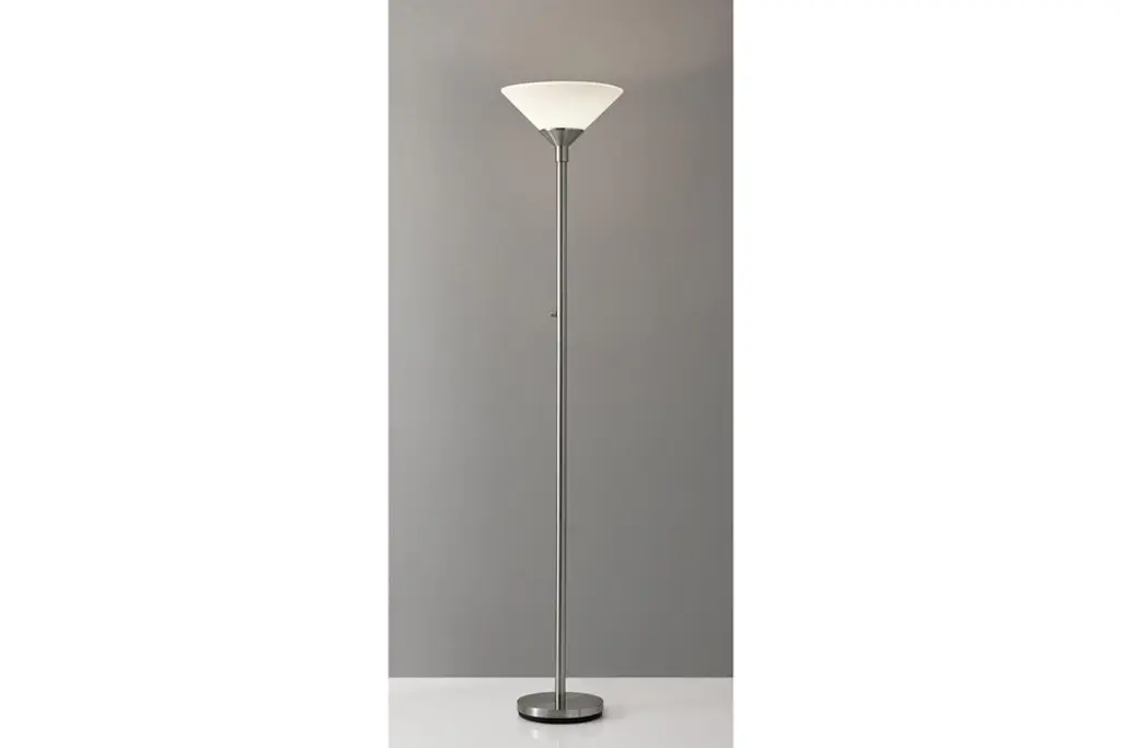 With a striking minimalist design, this lamp can be seamlessly incorporated into any dcor. Sleek and ultra modern, the Aries Torchiere is available in your choice of color to best complement your living room, bedroom, or office space. This torchiere lamp stands at 73 high and will provide 18% more ambient room light with 35% more efficiency than a standard 300 Watt halogen floor lamp.Shade: 14"diameter x 6"h