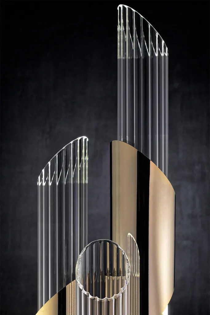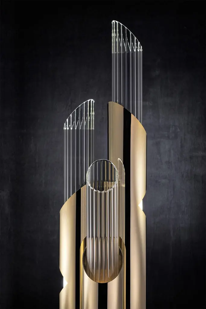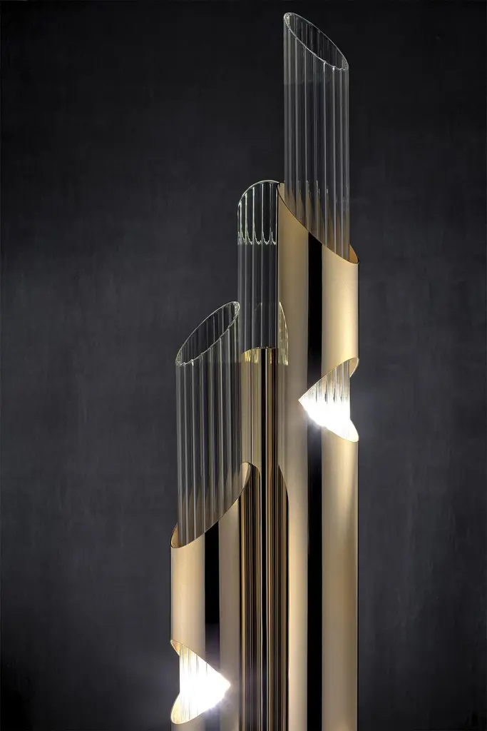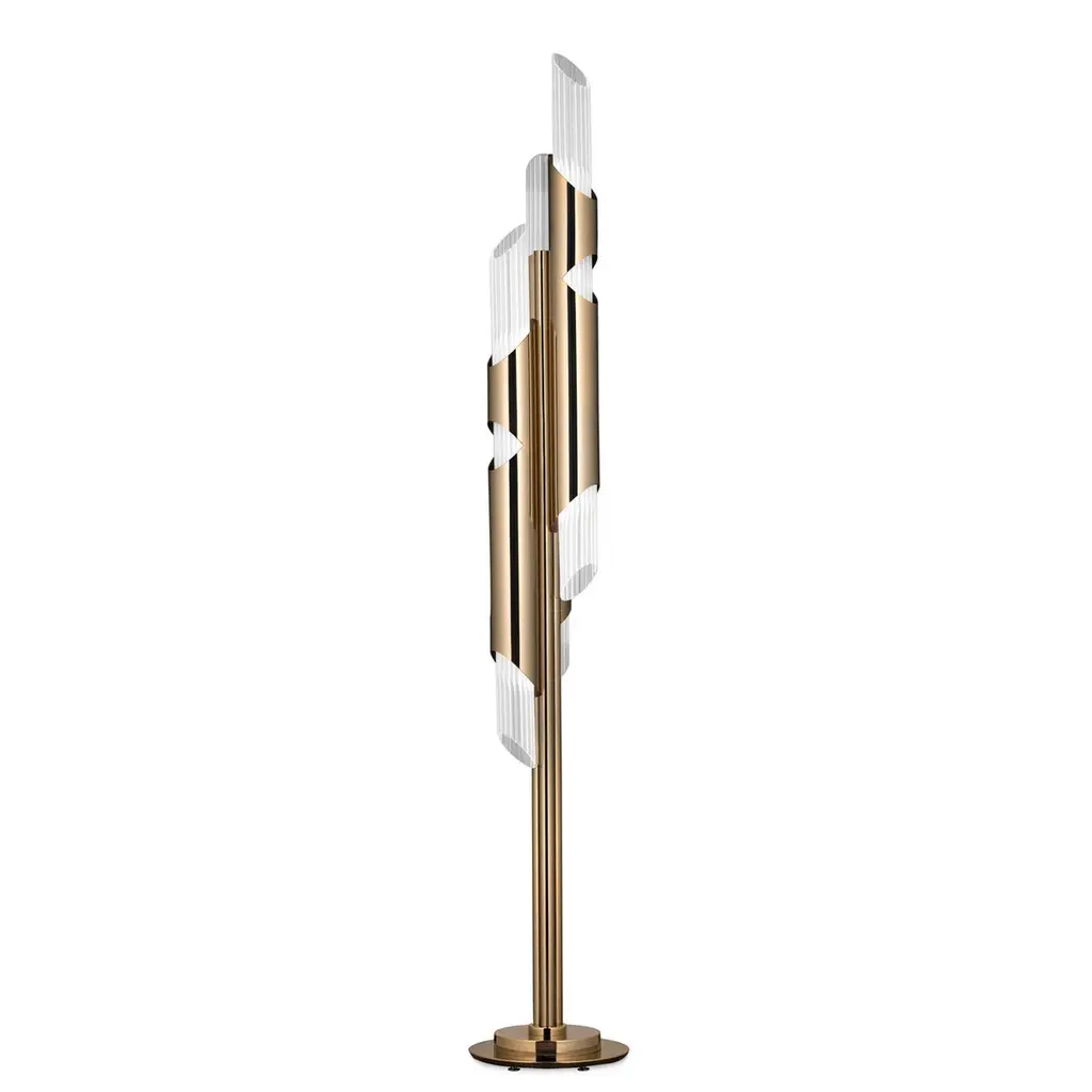 Floor lamp Arizona with structure in gold plated solid brassand with crystal glass tubes. With 6 led bulbs, lamp holder typeG9, max 2Watt, 220-240 Voltage. Bulbs not included.