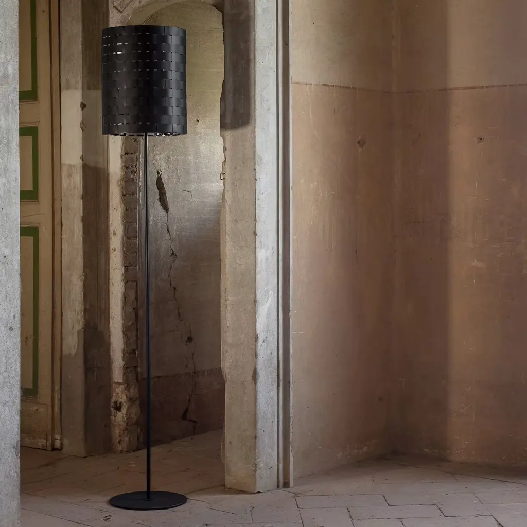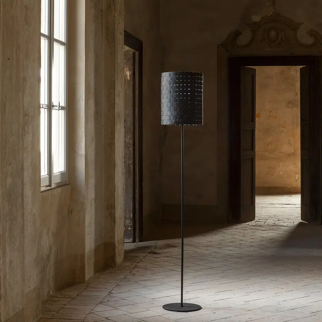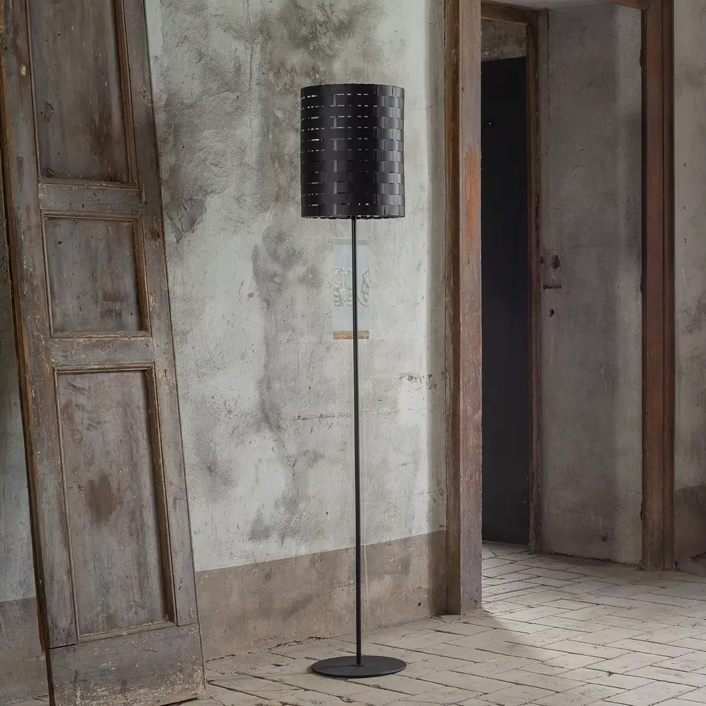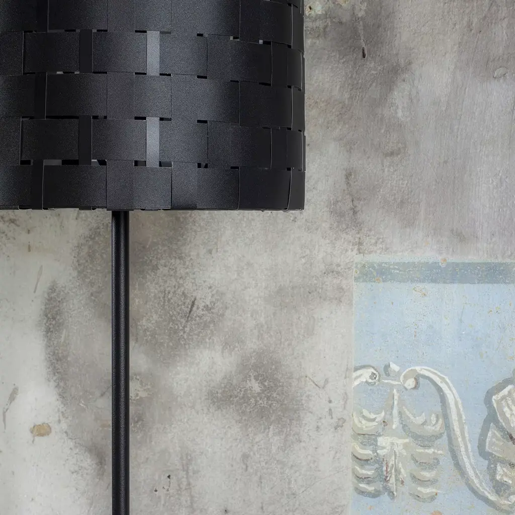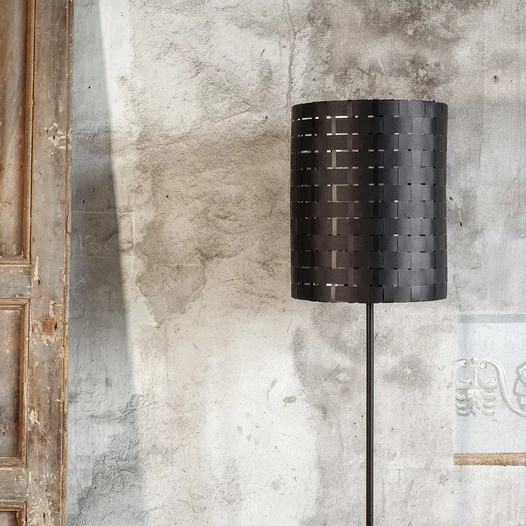 Timeless simplicity enhances the elegant yet clean style of this marvelous floor lamp, a precious jewel to complement a refined contemporary interior. Named after the Latin translation of Rimini, the Italian city where the historical Roman Via Aemilia ends, it features a hand-woven recycled aluminum shade that lets through a soft and diffused light, perfect for reading. Colored in black, it is available in other finishes, please contact the Concierge for details.