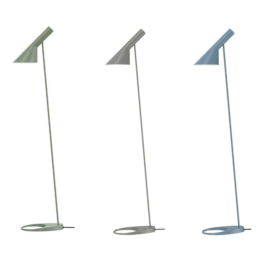 Arne Jacobsen AJ Floor Lamp in Electric Orange for Louis Poulsen.The AJ series was part of the lighting collection renowned Danish designer Arne Jacobsen created for the original SAS Royal Hotel in 1957. Today, his furniture and lighting designs are sought after by collectors worldwide. Executed in steel and zinc, the iconic shade on the AJ floor lamp emits a comfortable, downward focused light for task lighting or an interior accent. The adjustable shade is painted white inside to further soften the light. The AJ Lamp remains among Arne Jacobsen’s most well-known designs.Price is per item.Available in 9 colors: polished stainless steel, black, pale petroleum, white, dusty blue, electric orange, soft lemon, warm grey, and warm sand. Wet painted. Also available in an outdoor and indoor wall light, a larger table lamp, and a mini table lamp. This listing is for the floor lamp in Electric Orange.Accommodates a single E26 medium base 60w maximum bulb or LED equivalent. UL listed. White or black cord is 7.8 feet with switch on cord. Authorized re-edition. New in box from Louis Poulsen.In-stock lead time 2-3 weeks. Out of stock can take 6 weeks or more. Inventory availability can change without notice. Please inquire for time-sensitive projects.