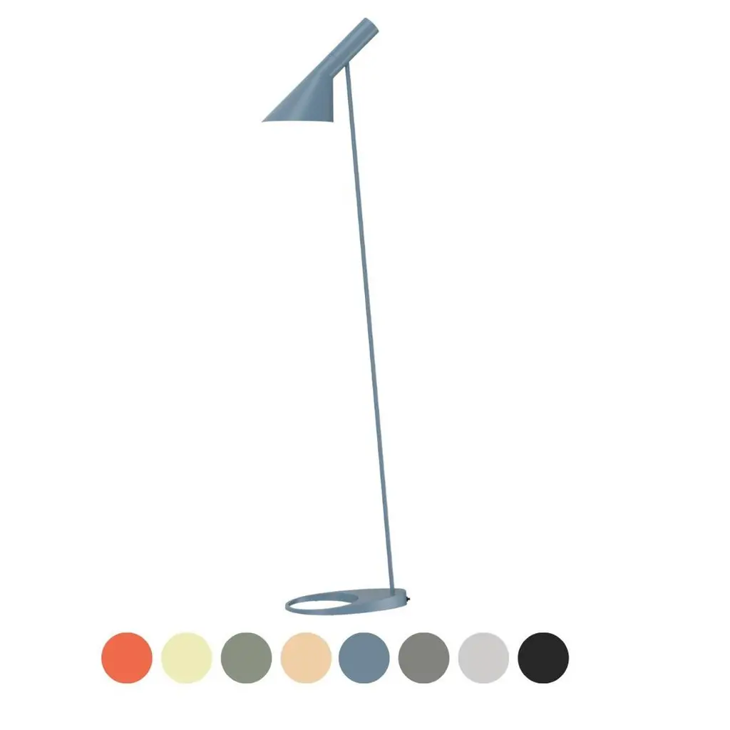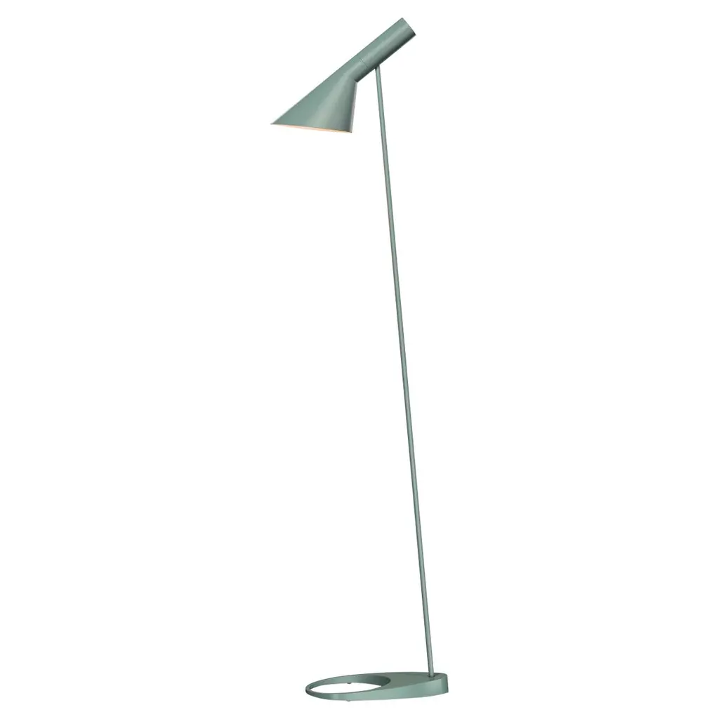 Arne Jacobsen AJ Floor Lamp for Louis Poulsen.The AJ series was part of the lighting collection renowned Danish designer Arne Jacobsen created for the original SAS Royal Hotel in 1957. Today, his furniture and lighting designs are sought after by collectors worldwide. Executed in steel and zinc, the iconic shade on the AJ floor lamp emits a comfortable, downward focused light for task lighting or an interior accent. The adjustable shade is painted white inside to further soften the light. The AJ Lamp is among Arne Jacobsen’s most well-known designs.Price is per item.Available in 9 colors: polished stainless steel, black, pale petroleum, white, dusty blue, electric orange, soft lemon, warm grey, and warm sand. Wet painted. Also available in an outdoor and indoor wall light, a larger table lamp, and a mini table lamp.Accommodates a single E26 medium base 60w maximum bulb or LED equivalent. UL listed. White cord is 7.8 feet with switch on cord. Authorized re-edition. New in box from Louis Poulsen.In-stock lead time 2-3 weeks. Out of stock can take 6 weeks or more. Inventory availability can change without notice. Please inquire for time-sensitive projects.