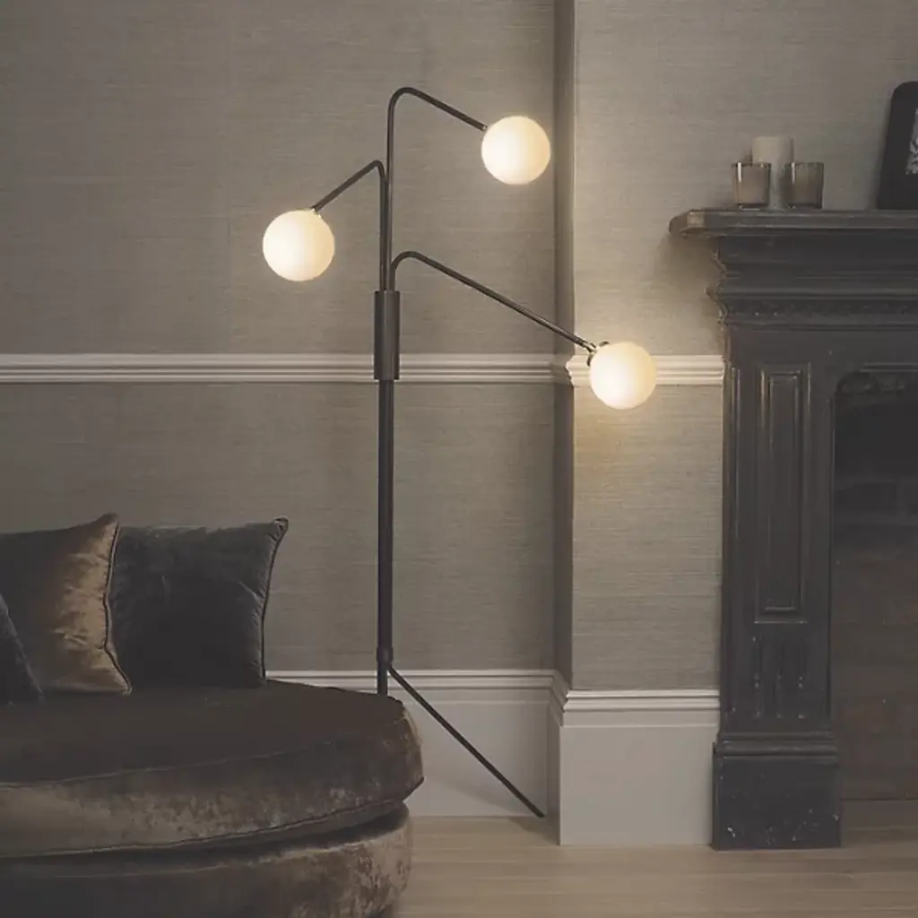 Make a strong, stylish addition to living spaces with the Array Opal Floor Lamp from CTO Lighting. A sleek structure with an airy, elegant appeal, it rises along three outward-angled brass arms that converge into a cohesive stem, bound by a smooth cylindrical accent. Each stem can pivot with ease, sweeping out and down to adjustable lamping enclosed within an orb-shaped diffuser of hand-blown opal glass that softens bright glare to a pleasing warmth and lends a modern personality to its surroundings.
