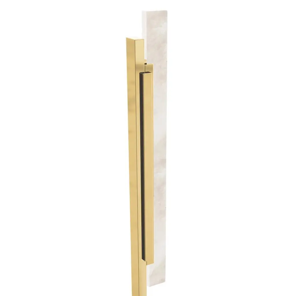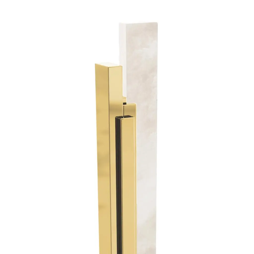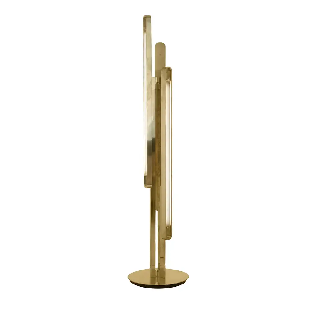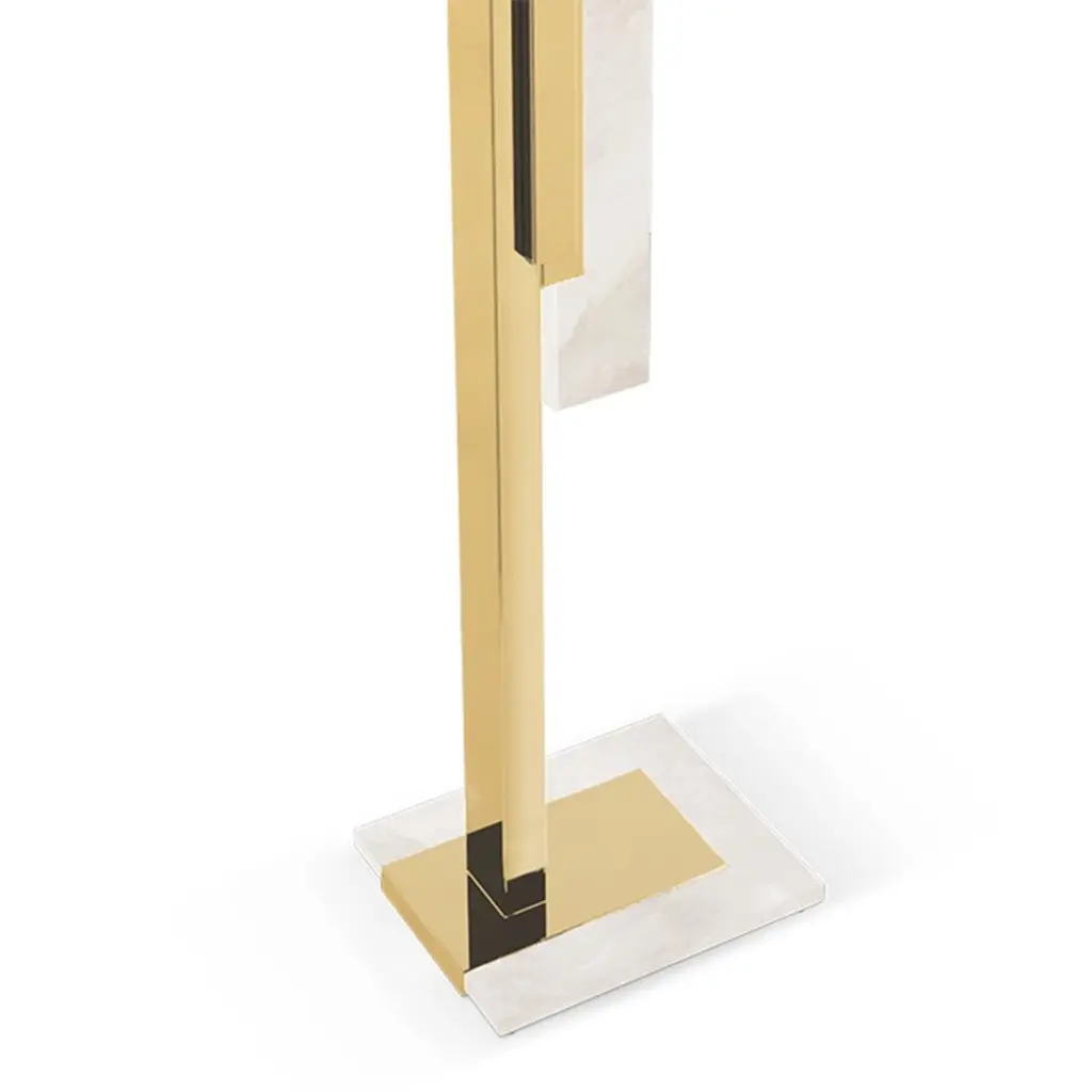 Floor Lamp Arrow Alabaster with structure in solid brass in polished finish and with alabaster light diffuser.