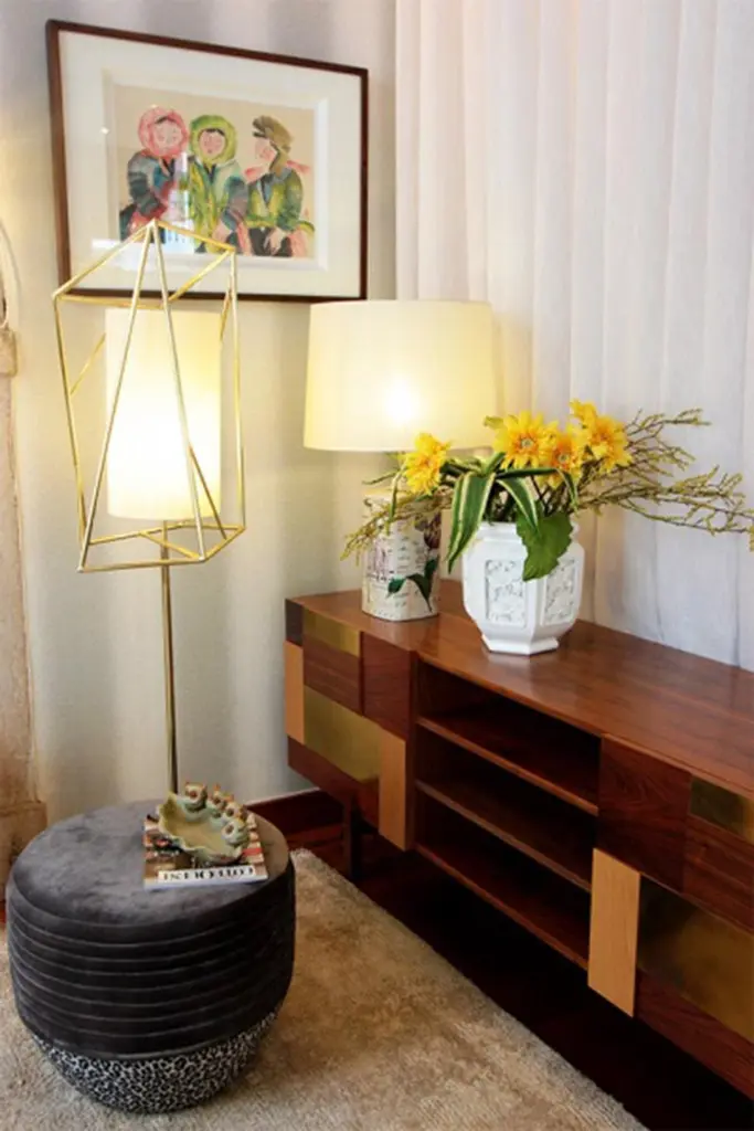 Art Deco Inspired Star Floor Lamp Polished Brass And Linen Shade