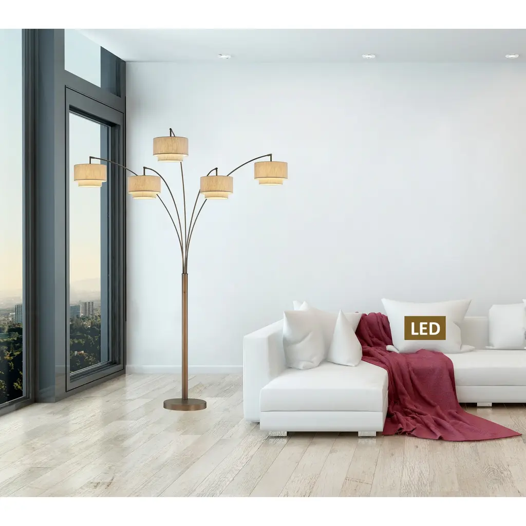 Elevate your modern decor with the Artiva Evita LED Tree Arched Floor Lamp. The double layer premium shade design exudes industrial/Hollywood allure, while the arched curved design adds a soft note to your space. Standing at almost 7 feet tall, this adjustable LED floor lamp features a dimmer switch that allows you to create just the right atmosphere for any occasion. With three 360-degree view LED bulbs, this lamp provides ample lighting for reading, writing, or accenting your living room. Plus, it's smart outlet compatible for added convenience.Features: