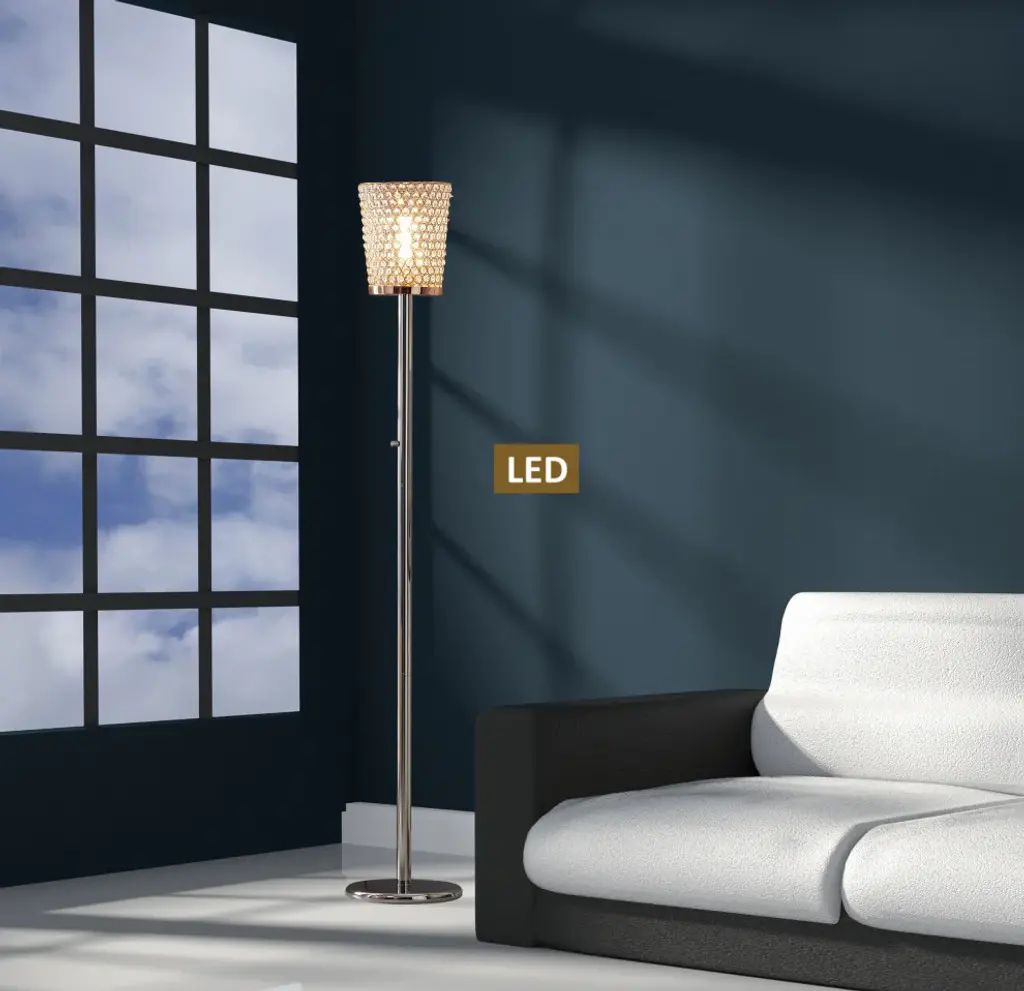 Light up your living room, bedroom or office with the "Fifth Avenue" 71-inch Modern LED Crystal Torchiere floor lamp from Aritiva USA. It''s clear handcrafted Rose Copper Crystal Shade shine/sparkle beautifully in the light, providing a warm and inviting tone to any room. This lamp is perfect addition to your home. It features full-range dimmer switch allow you to dim at any level. Will transform any room To whole difference world. Perfect conversation piece.Handcrafted Crystal Shade (9.25"+7.25")x 11"HExclusive 10W (1000 Lumens , 75-100W replacement)True 360-Degree view T10 LED Bulb includedCompare to 100W lamp, this Fifth Avenue LED lamp uses only 10W of electricity and will save you over $15 every year off of your electric bill (based on 6-hours per day usage and 11 cents per kilowatt)Beautiful Modern Chrome Torchiere (71"H ) in Rose Copper finish and Crystal Shade.Exclusive LED Full Range Dimmer SwitchSmart outlet Compatible