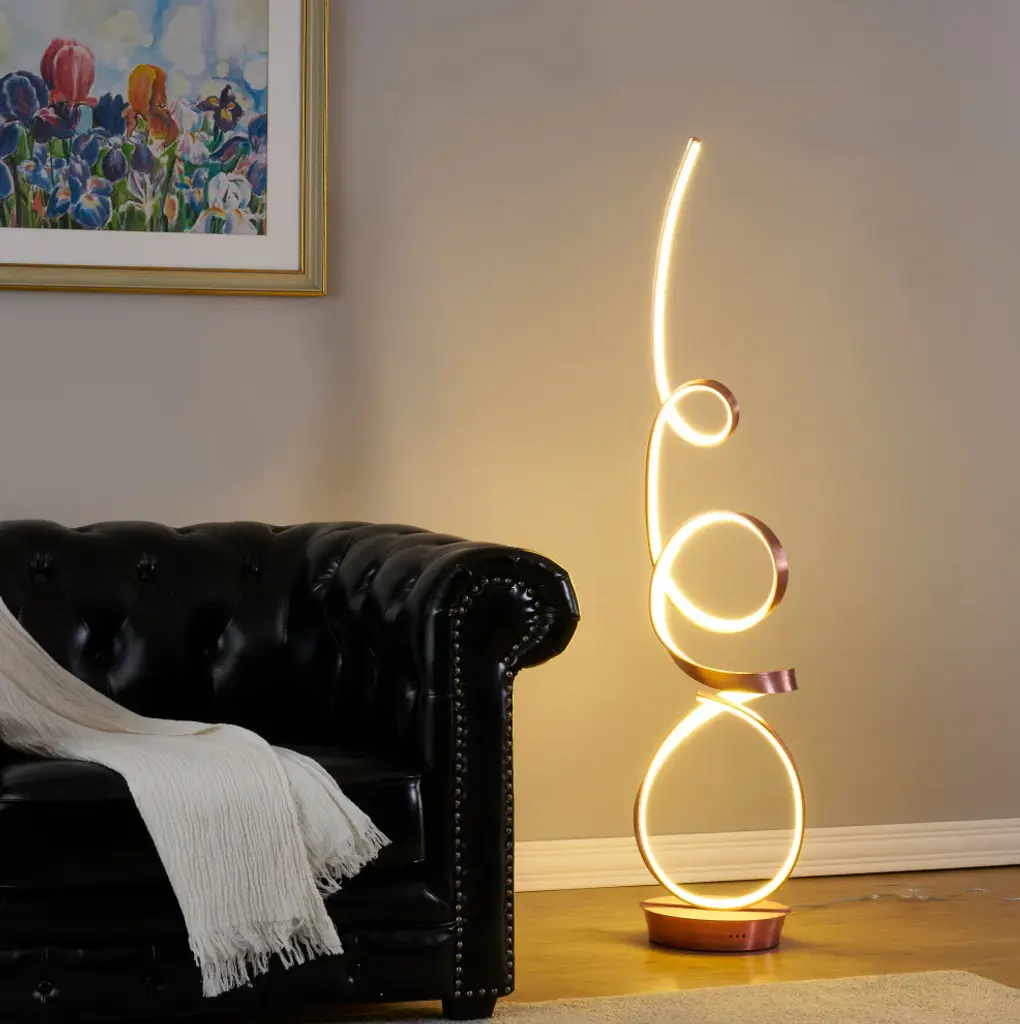 Light up your living room, bedroom or office with this Sleek, Modern and Unique Design "Mozart" LED Floor lamp from Artiva USA. Artiva "Mozart" LED floor lamp Design is a perfect addition to any room with modern or contemporary décor. The floor lamp holds 68W LED(5000 Lumen) and warm LED lights( 3000K ). The artistic curved design adds a soft note to any of your décor. Standing over 63"H, the fixture has a statuesque appearance and draw attention. The Artiva "Mozart" LED floor lamp allows you to place the light wherever you need it and provide ample lighting for creating a spot light , in the setting next to the couch, in the corner or in the center of your living room. Super Bright integrated LED included. Perfect conversation pieces. Smart outlet compatible.Features exclusive 68W (5000 Lumens) integrated Super bright 63"H LED Floor lamp . 25000 hrs rated --last over 20 years . never have to change bulb again.Compare to 300W lamp, this Artiva LED lamp uses only 68W of electricity and will save you over $50 every year off of your electric bill (based on 6-hours per day usage and 11 cents per kilowatt)Sleek, Modern and Unique Design. Beautiful Anodize Rose Copper finishFoot On-off Switch. Smart Outlet Compatible Works with Smart outlets that are Alexa, Google Home assistant or Apple Home Kit enabled to turn the lamp on/off.