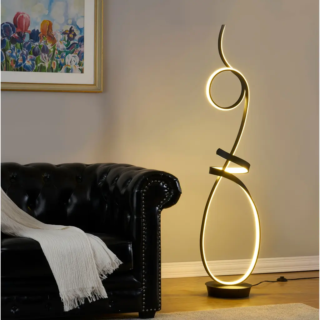 The Artiva USA "Symphonie II" LED Floor Lamp combines sleek, modern design with energy efficiency, offering both functionality and style for contemporary living spaces. Here's an updated breakdown with the new black finish: Sleek, Modern Design: Featuring a beautifully curved, artistic shape, the "Symphonie II" adds a soft, sophisticated touch to any room. The Black finish gives it a bold, minimalist look that complements a variety of modern or contemporary decor styles. Adjustable Brightness: The dimmer function allows you to easily adjust the light intensity to suit your needs, whether you need bright, focused light or a softer, ambient glow. Powerful Yet Efficient Lighting: Equipped with a 56W LED (compared to the previous 68W), the lamp provides 5000 lumens of bright, warm white light at 3000K, perfect for creating a cozy atmosphere while offering sufficient illumination. Long-Lasting: The LED bulb is rated for 25,000 hours, meaning it will last for over 20 years with regular use, eliminating the need to replace the bulb. Energy Efficient: Consuming just 56 watts, the "Symphonie II" is far more energy-efficient than traditional lamps, saving you more than $50 annually on your electricity bill (based on 6 hours of daily usage and 11 cents per kilowatt). Smart Compatibility: The lamp is compatible with smart outlets, including those controlled by Alexa, Google Home, or Apple HomeKit, allowing you to turn the lamp on or off via voice commands. Foot On/Off Switch: The foot switch allows you to easily turn the lamp on or off without bending down, adding convenience and ease of use.