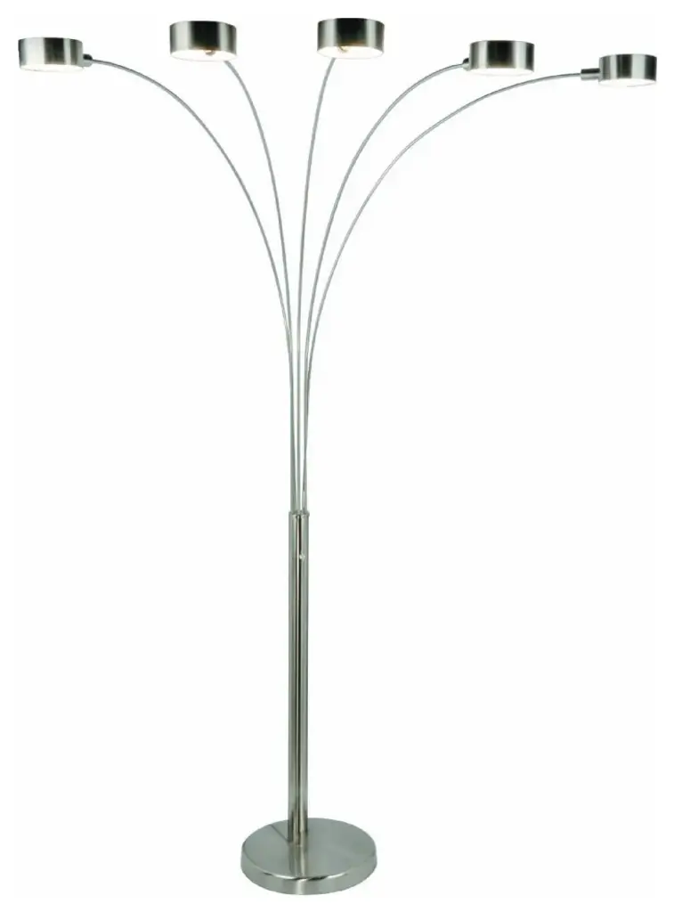 Light up your living room, bedroom or office with this sleek and modern LED 5-Arched Brushed Steel Floor lamp from Artiva USA. A perfect addition to any rooms with modern or contemporary decors. The Micah Pro LED Floor Lamp hold super bright and warms LED lights (3000K ) with dimming function. The curved design adds a soft note to your decor. Standing over 7 feet, the fixture has a statuesque appearance that draws attention. This Artiva USA exclusive design LED floor lamp allows you to direct the light wherever you need it and provide ample lighting for reading, writing or create a spotlight in the setting behind the couch, in the corner or in the center of your living room. Heavy weighted base grants perfect balance and prevent the lamp from tipping. An Artiva USA exclusive, five brightest true 360-degree beam view angle LED bulbs included (LED-G9-7TDM-30). US Patented Design. US Patent# US D753,867 S.300W Equivalent 5-Arched LED Floor lamp uses only 35W Energy. The most powerful/brightest LED lamp yet.5 Artiva USA exclusive 7W each (over 4000 Lumen) True 360 Degree view LED bulbs (LED-G9-7TDM-30) included with Dimming function.Use 10 times less energy than regular bulb (60 watts replacement used only 7 watts of energy each) Compare to 300W lamp, this Artiva LED lamp uses only 35W of electricity (over 4000 Lumen of Brightness/300W equivalent) and will save you over $63 every year off of your electric bill (based on 6-hours per day usage and 11 cents per kilowatt)Adjustable Ach (left or right only) and adjustable shade (360 degrees)Measurement overall: 54"x54"x88"H, BASE:15"X15"X2"HHeavy Duty and in beautiful Brushed Steel finish.US Patended Design. US Patent# US D753, 867 S