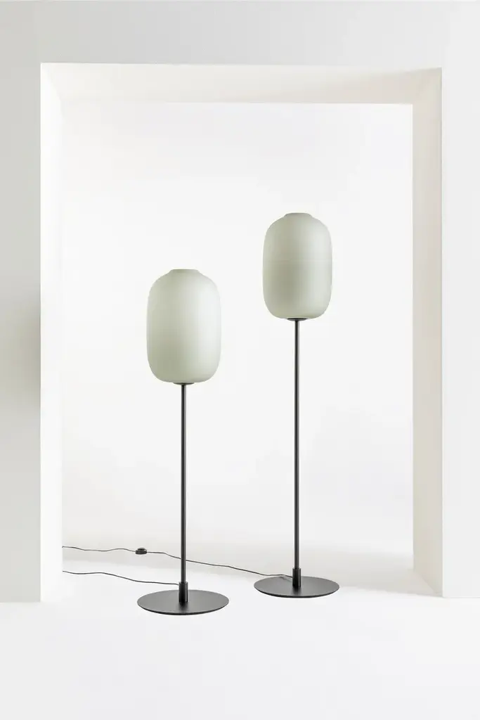 Soft and curved lines, inspired by the antique porcelain typical of the Asian culture, characterize this family of lamps with a very elegant and essential design, capable of brining all the charm of the ancient Orient to every contemporary space. This collection, which already included table and hanging models, is enriched with a new floor version, offered in two different heights. The diffusers of these lamps, available in four attractive hues with a matte finish, are made of mouth-blown glass according to Murano’s ancient tradition, assuming a completely different image when the lamps are turned on or off.Bulbs not included.We reccomend A60 11W 230V led bulbs for E27 lamp holder