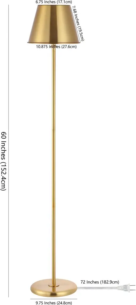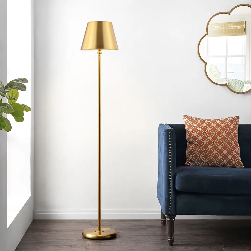With its time-honored shape and gleaming golden finish, this slender, five-foot-high floor lamp is a welcome addition to traditional and contemporary rooms alike.