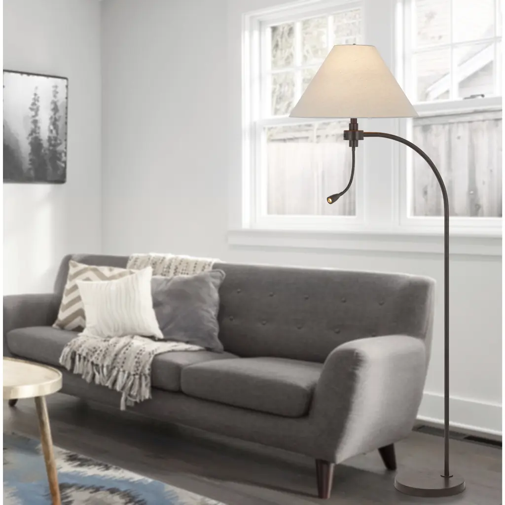Illumninate your favorite spot with this mini arc floor lamp. It features a classic arc lamp design with an added Led gooseneck reading light.The flexible gooseneck design allows for an optimal control of light direction.