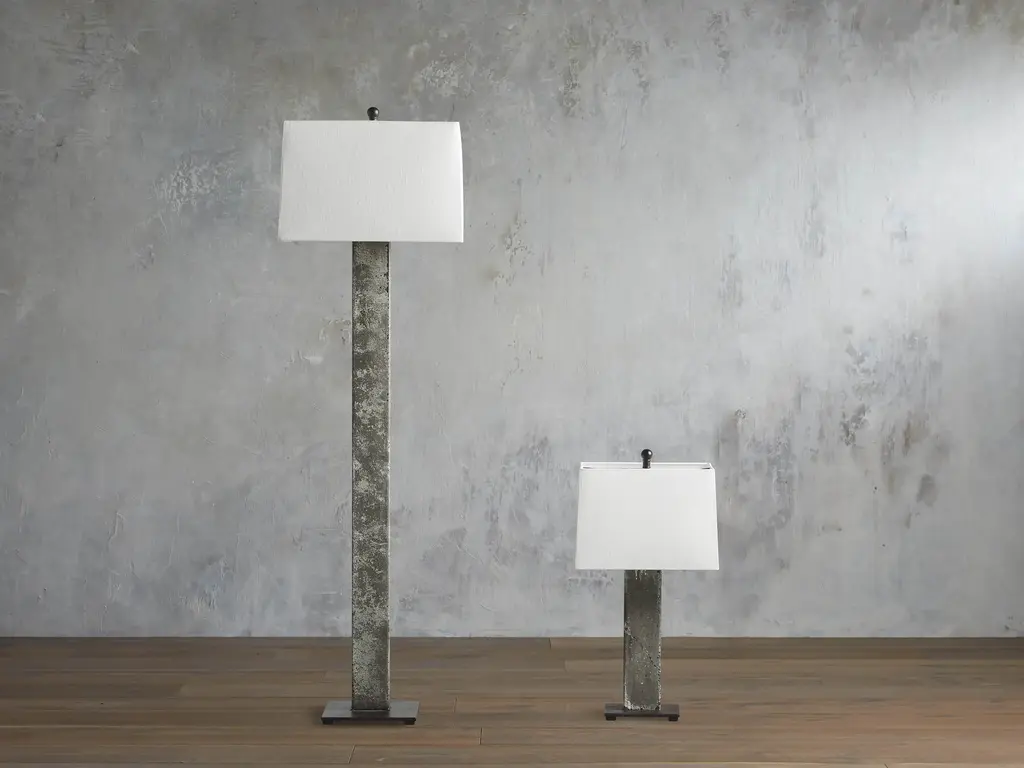 Our Avery Lamp Collection features stunning designs handcrafted from iron and steel. Complemented by a classic linen shade, Avery’s hand-distressed grey finish varies in texture and tone.