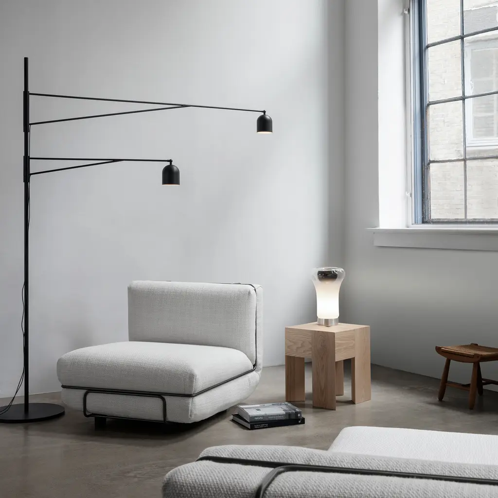Deliberately uneven, the Karakter Awkward Floor Lamp can illuminate two different areas at the same time. Created by Anatomy Design, this lamp has two arms of different lengths. Both arms rotate 360 degrees to maximize function and provide an easy way to brighten a large area in a room. Additionally, the two dimmers on the cable offer a convenient solution to adjust the intensity of each light by tapping them with a foot. Slender and elegant, the Karakter Awkward Floor Lamp is made from powder-coated steel and aluminum and comes with a black rubber cord. Use this minimalist floor lamp to illuminate a living room or home office – regardless of location, it will brighten the space without stealing the spotlight from the rest of the décor.