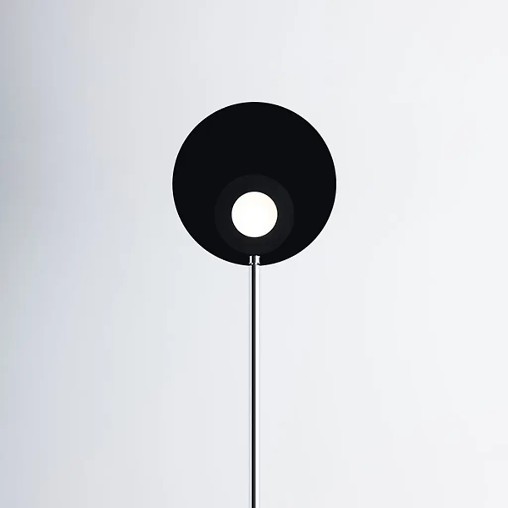 Axolight Kwic 36 Medium Floor Lamp in Intense Black by Serge & Robert CornelissenKwic is a lively expression of graphic geometry, dynamism and refinement. Its asymmetrical lines are like elusive droplets that play with highly intense, luminous reflections.Kwic, designed by Serge and Robert Cornelissen, is a family of floor, suspension, ceiling or wall lamps.A semi-spherical blown glass diffuser contains the integrated LED light source and overlaps – in a decentralized position – with a circular painted aluminium disk, available in three different colours.The Kwic lamps bring into the space an intense light, which radiates from the opaline white diffuser, and a delicate glow that filters through the back of the frame.Kwic has a versatile personality: it conforms to multiple contexts and living styles. Depending on the location it can be a discrete presence or become a point of attraction in space.Informal elegance. Long-established and award-winning lighting designers, they designed Rythmos, Shatter and Kwic collections. The last one is a strong and elegant collection which includes floor, ceiling, wall and suspension lamps in aluminum and blown glass. It was born from the observation of the behavior of mercury. Their creations are characterized by the great ability to combine form and technical functionality.Additional information:Materials: Aluminum-Steel bodyColor: BlackBuilt in LED moduleCCT 3000 KDiffused beamSurface installation over holesSupply voltage ~110-240VSwitch mode: on-offDRY LOCATION CRI>90Dimmable110-240VAC~2151 lm ~119 lm/WDimensions: Ø 36 x 201 H cm