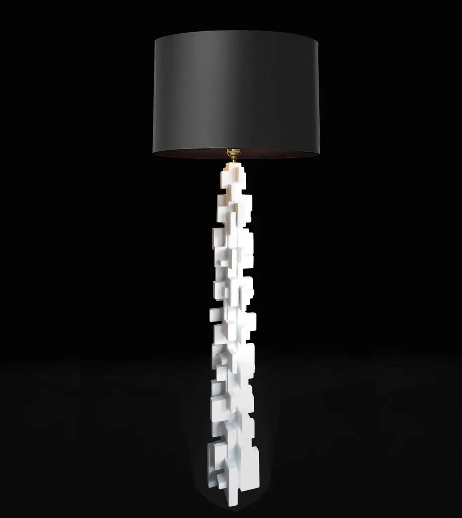 Babel Floor Lamp by Daniel Schneiger.Dimensions: D 23 x W 23 x H 132 cm.Materials: Wood and resin.Shade not included. Custom finishes available. All our lamps can be wired according to each country. If sold to the USA it will be wired for the USA for instance.Dan SchneigerAs an architect and artist, I’ve always been conscious of the symbiotic relationship between the two disciplines. Sensing a growing divide between how we design architecture and make art, I was compelled to make architecturally significant objects with my hands. My work is an exploration of the symbiosis between art and architecture and the tension between technology and handcraft.