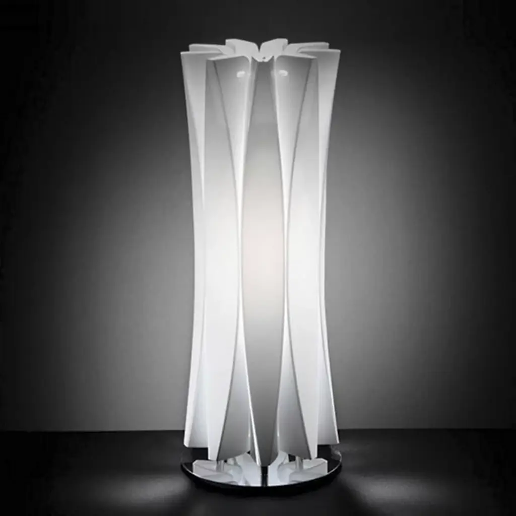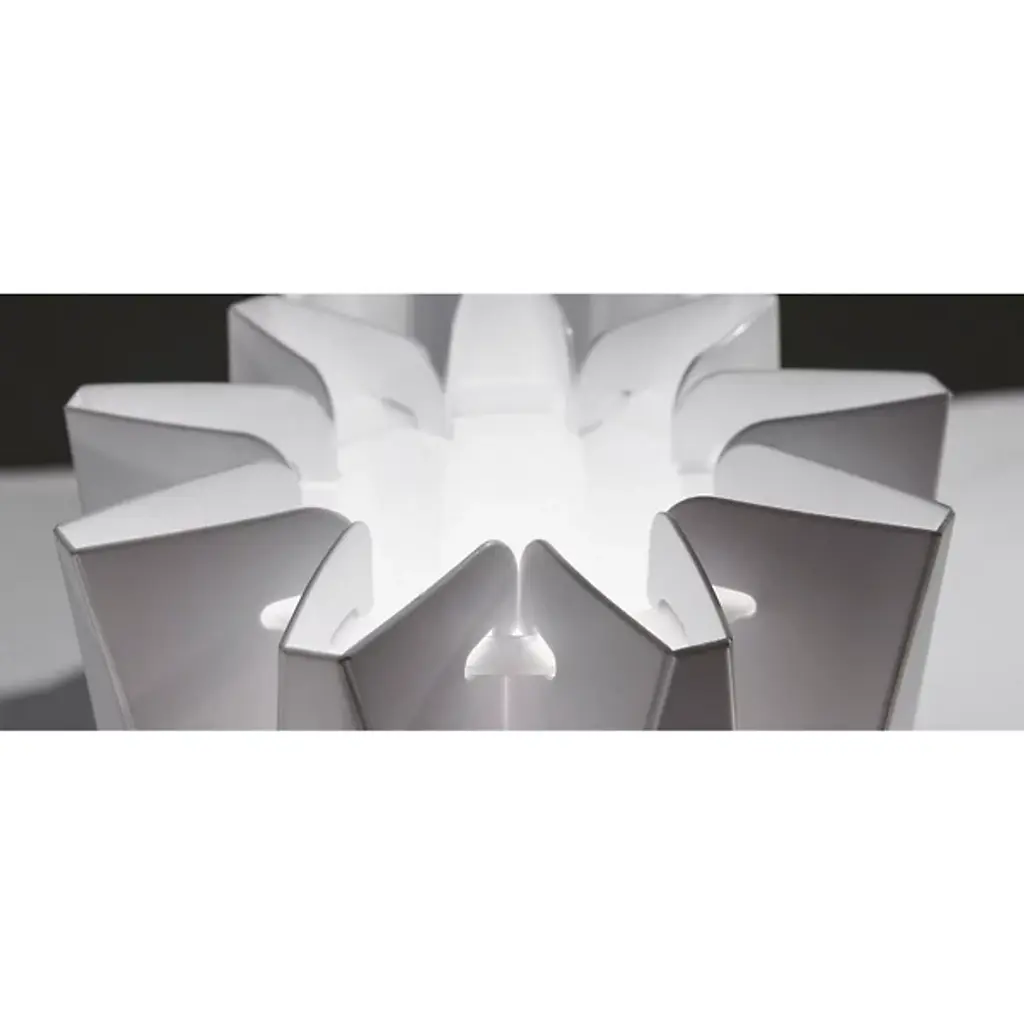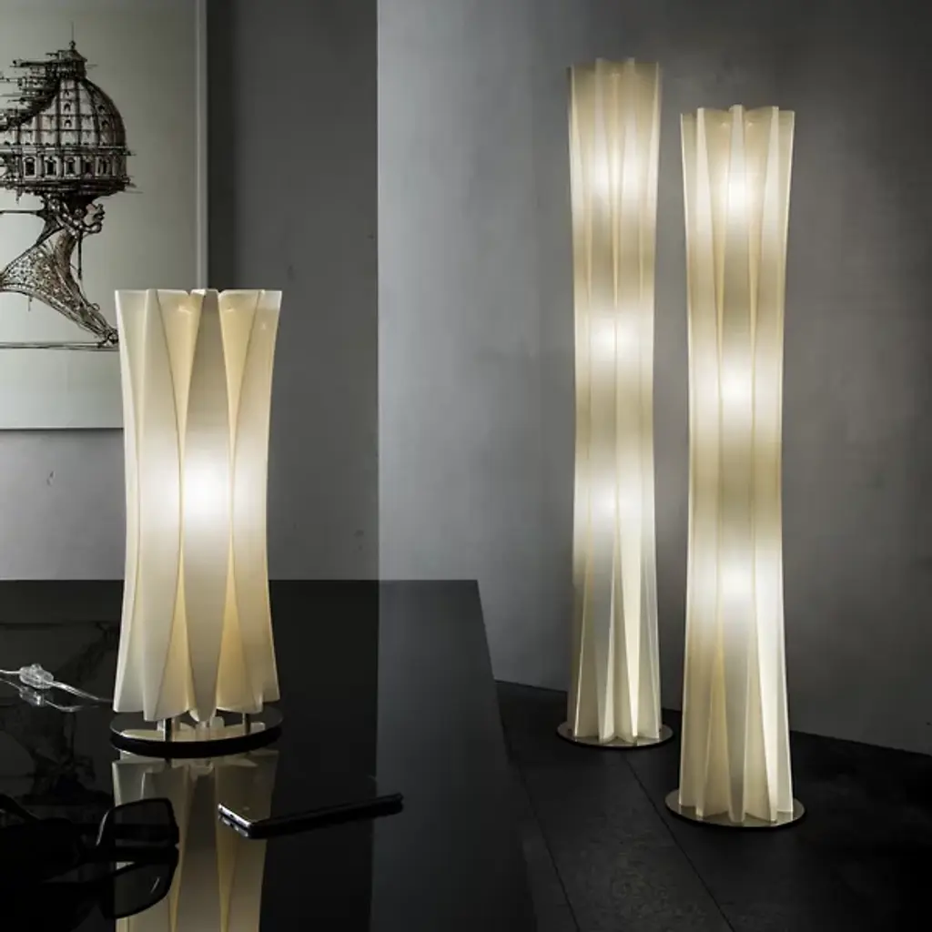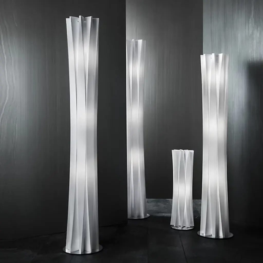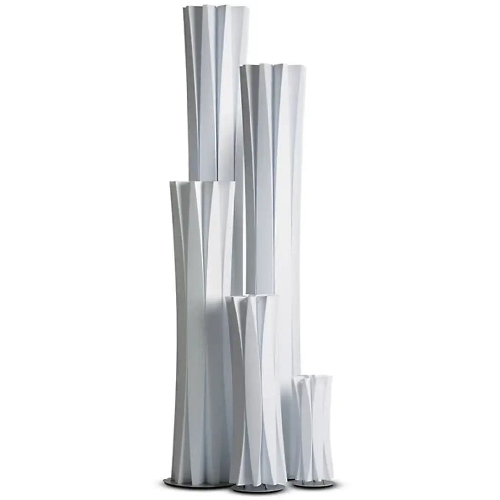 Inspired by sculptor Constantin Brancusi's efforts to depict the inner essence of things instead of its literal form, the Slamp Bach Floor Lamp reveals its inner light through a slender tube with deep ridges that play on the effects of light and dark. Made out of Opalflex with a short, round stainless steel base, it is available in a white or gold finish and in three sizes.