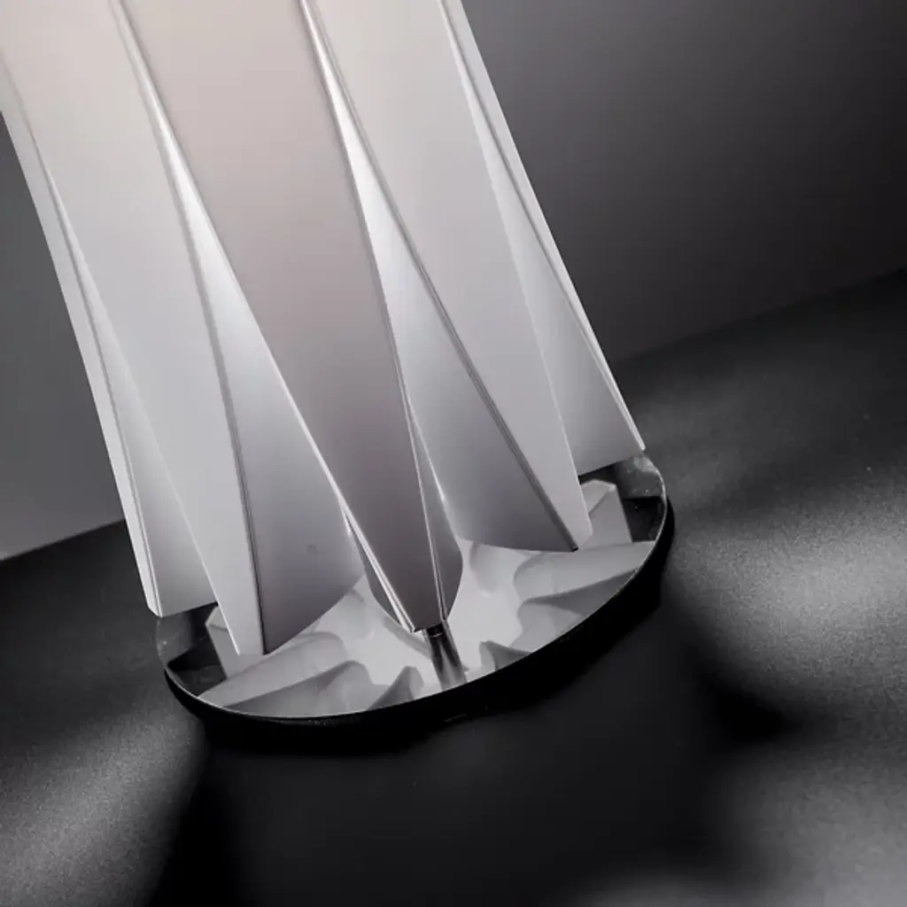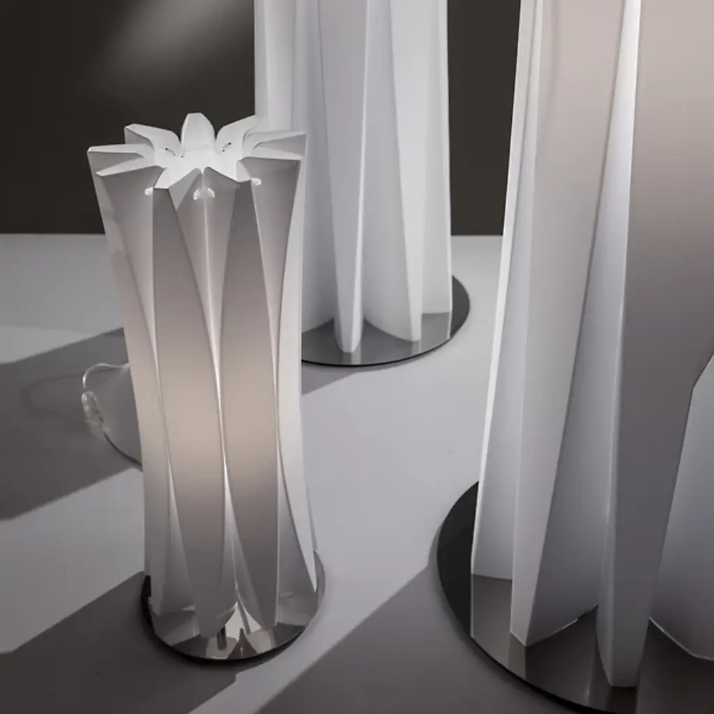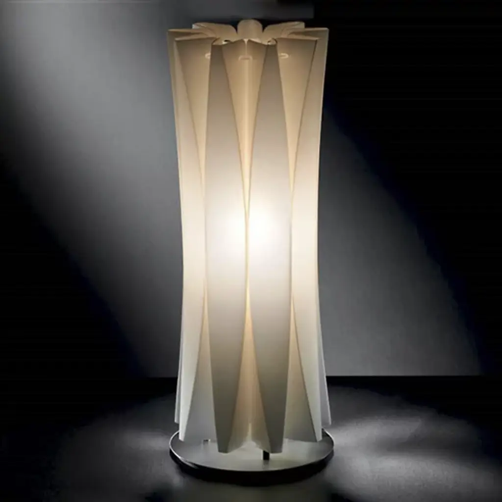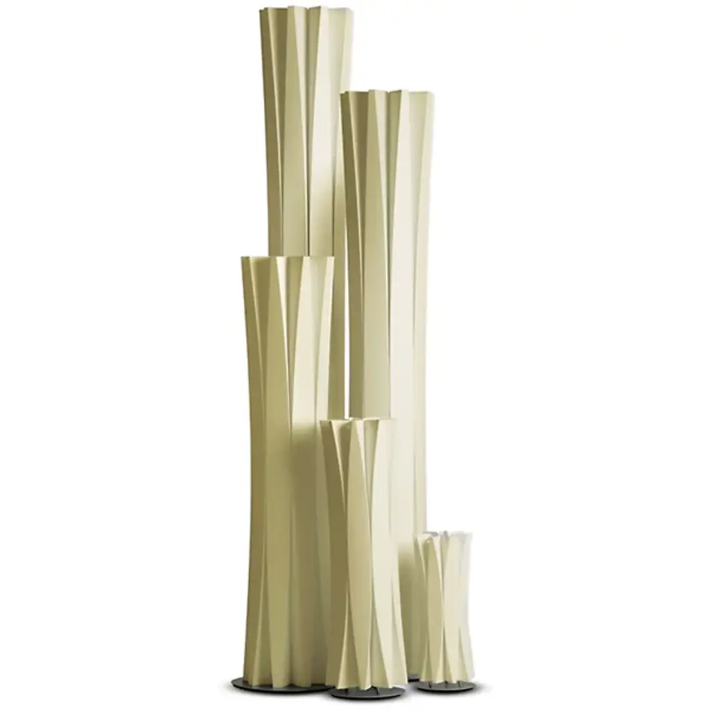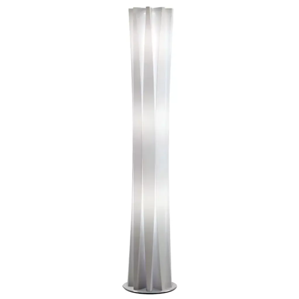 Inspired by sculptor Constantin Brancusi's efforts to depict the inner essence of things instead of its literal form, the Slamp Bach Floor Lamp reveals its inner light through a slender tube with deep ridges that play on the effects of light and dark. Made out of Opalflex with a short, round stainless steel base, it is available in a white or gold finish and in three sizes.