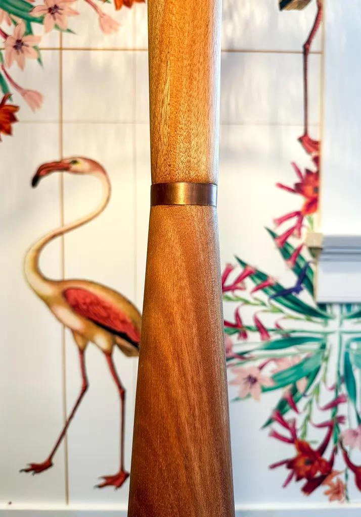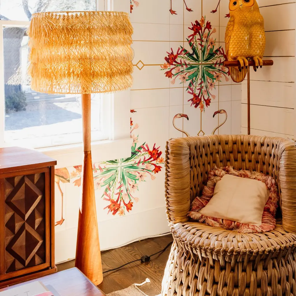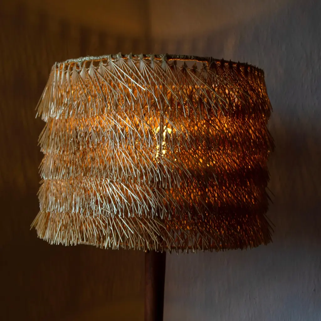 The Popotillo Danish lamp beautifully combines two distinct worlds. The vintage Danish lamp base, a cherished part of our collection for many years, has been reimagined to accommodate a popotillo lamp from Michoacán. The reference to Bajio highlights the region where both the base and shade are made: the historically rich area in the center of Mexico, comprised of Jalisco, Michoacan, Queretaro, San Luis Potosi, and Guanajuato. During the day, the popotillo shade is a delightful wheat color, while at night casts playful shadows when illuminated.Care:Shade: dust with a feather duster. Base: use wood cleaner to keep hydratedMade in MichoacánWheat was a crop that was assigned as a recompense in colonial times, for those indigenous groups that had agreed to help the crown conquer the Aztec empire. A license to grow wheat was a very profitable venture, as it guaranteed an income for the bread that was consumed in the urban centers by the new Castizo population. Now wheat is grown freely, but certain states like Michoacan and Tlaxcala have a strong legacy of bread and therefore wheat byproduct, such as the popotillo. Luckily for us, it is fashioned into beautiful pieces available at La Embajada.