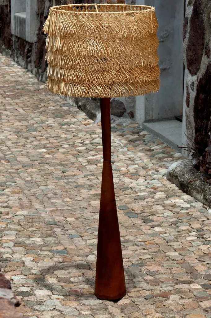 Bajio Danish Mesquite Floor Lamp With Popotillo Wheat Straw Shade