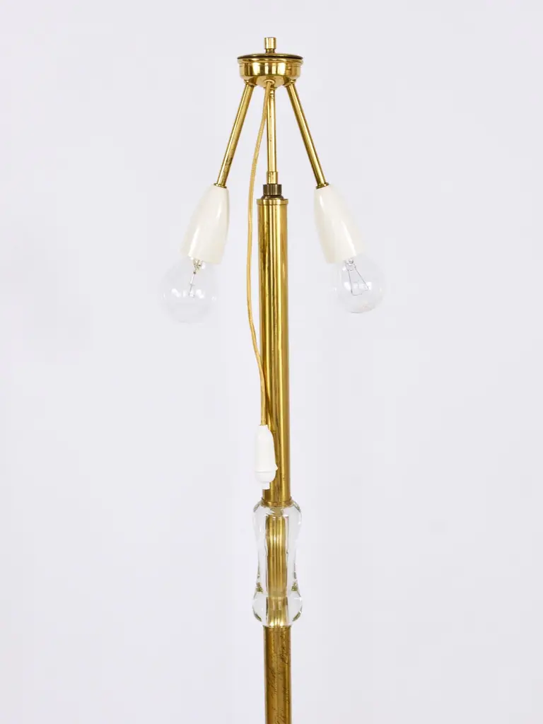 Bakalowits Vienna Solid Brass Floor Lamp With Glass Handle, Austria, 1950s