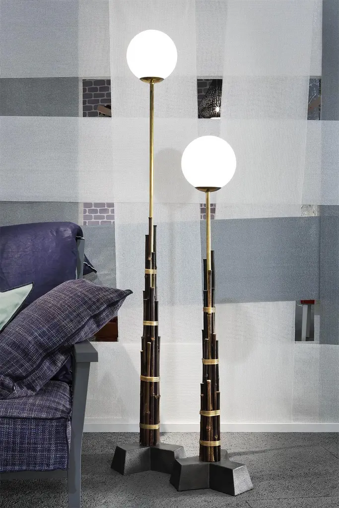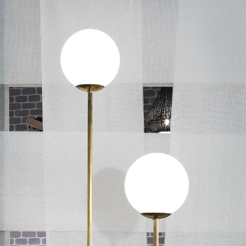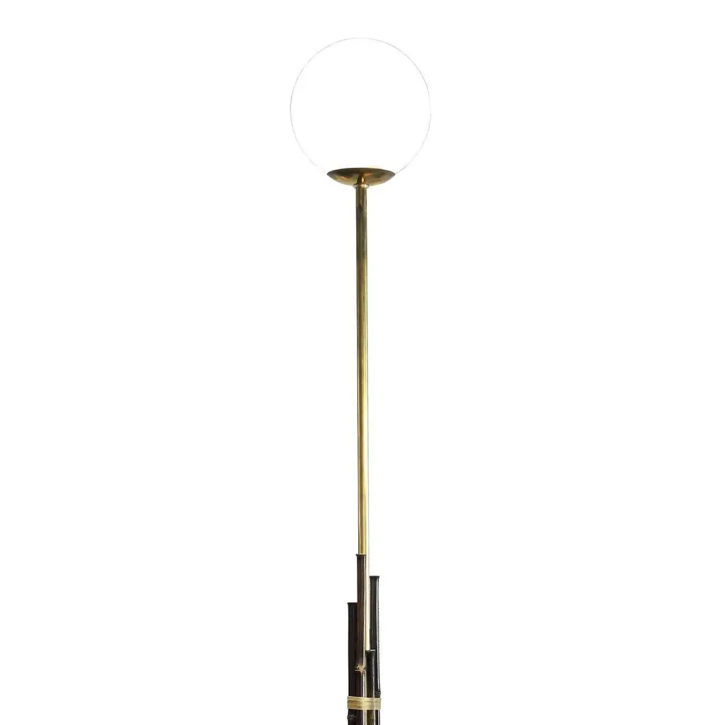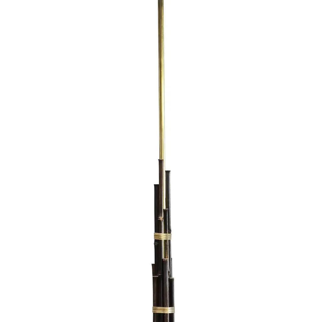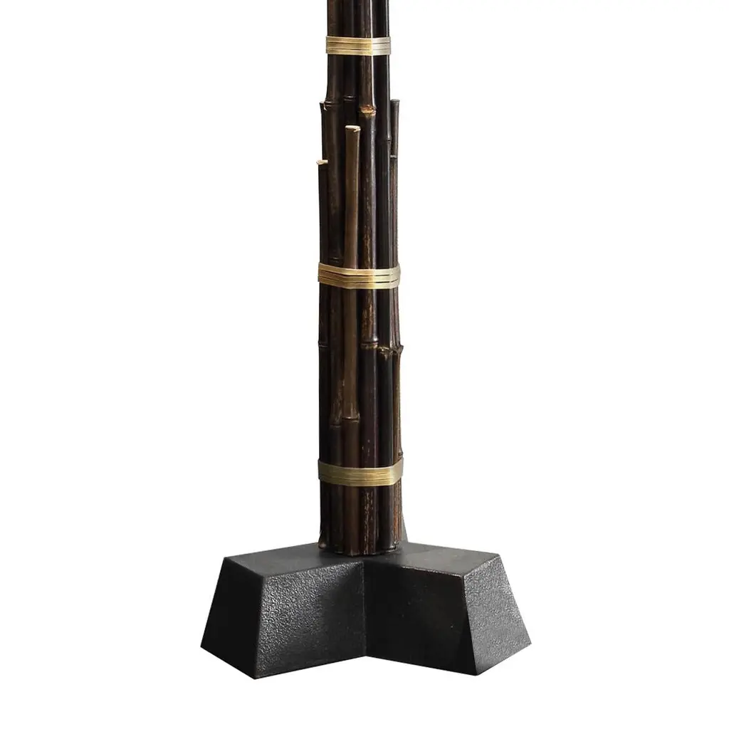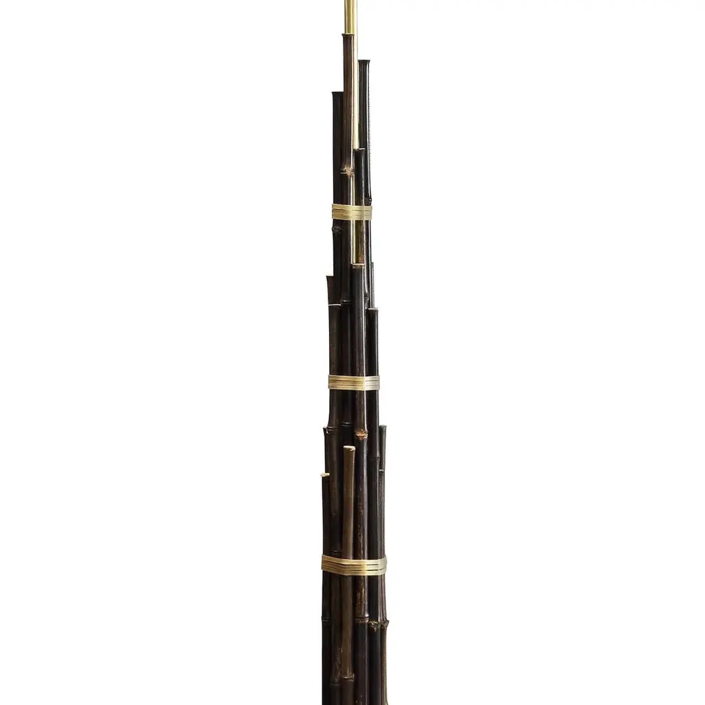 Floor lamp bamboos high with black bamboo,with solid painted brass rod with opal glass shade.Wiring 14W bulb, 220Volt and switch included, lampholder type E27, bulb not included. On casted iron, Measure: base, 30cm diameter.Available in 110 Volt US plug on request.