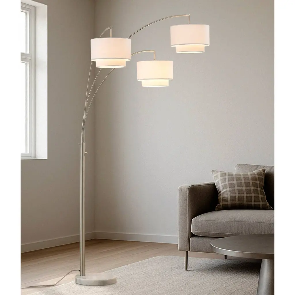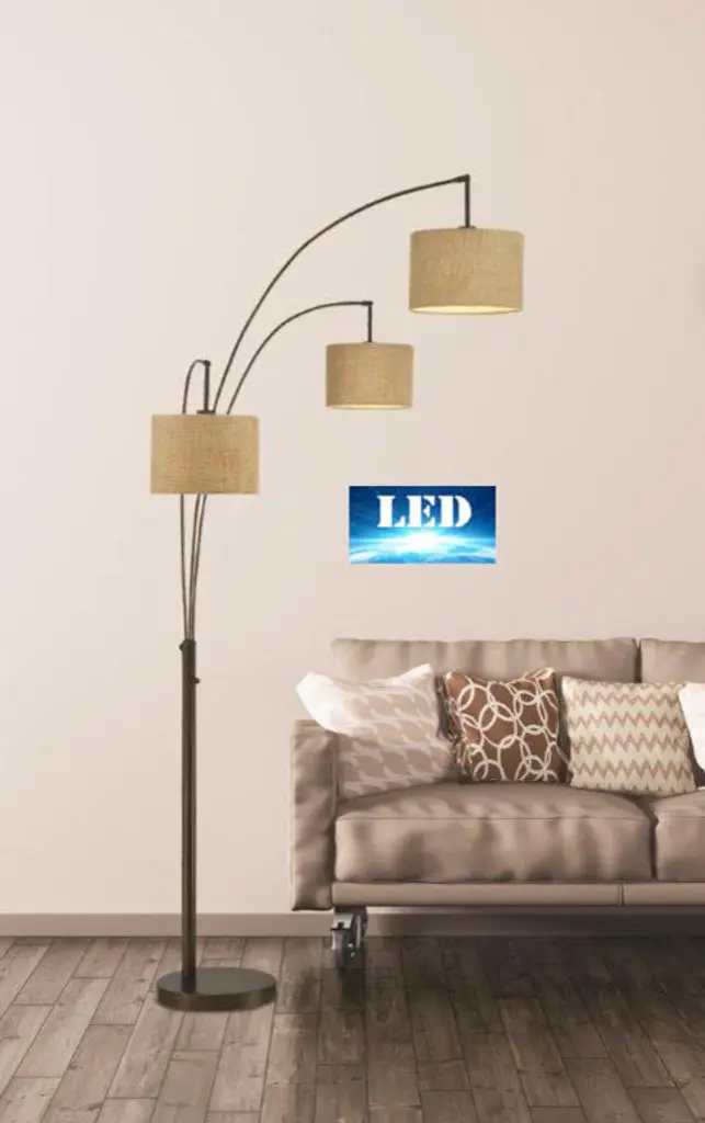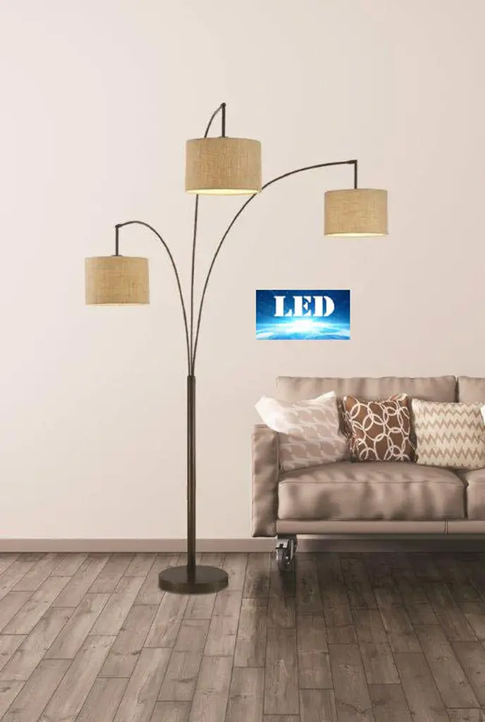 Lumiere by Artiva USA is an excellent match for Modern and Contemporary decors and shows off it beauty of simple Designs. The Arched Curved design adds a soft note to your decor. Standing over the fixture has statuesque appearance and draws your attention. This Adjustable Arch (left or right only) LED Floor lamp direct the light wherever you need it and creates just the right atmosphere with a convenient, energy efficient Dimmer Switch. Lumiere provides ample lighting suitable for reading, writing or creating a spot light in a setting, behind the Couch, Corner Light or Center piece lighting for your Living Room. Exclusive Three LED Dimmable true 360-degree view 8W bulb included.Bulb Type: LEDShade color: BurlapSwitch Type: DimmerNumber of Lights: 3Bulbs Included: YesExclusive Three LED Dimmable true 360-degree view 8W bulb included.Smart Outlet Compatible . Works with Smart outlets that are Alexa, Google Home assistant or Apple HomeKit enabled to turn the lamp on/off.