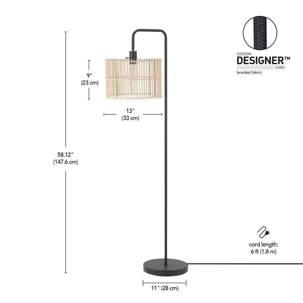 Barden 58" Matte Black Floor Lamp With Bamboo Shade - One Size - One Size