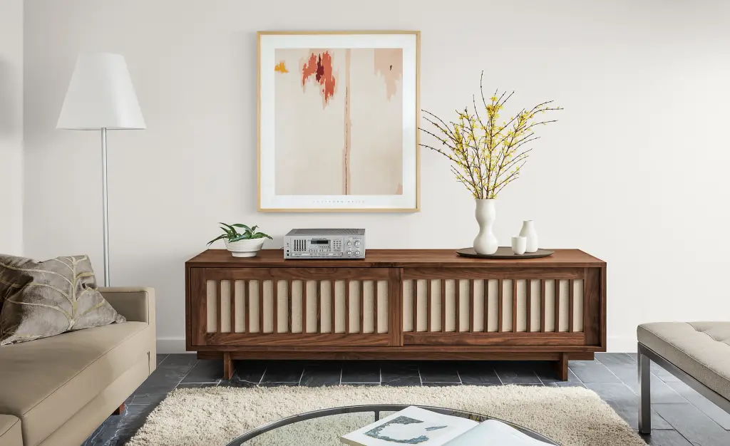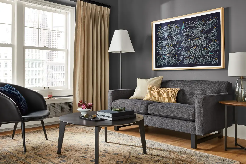 Tall and slim, this lamp has a hexagonal stem with an exposed channel that holds the fabric-wrapped cord. The unique shade is round at the top and flows into a square at the bottom, adding elegance and providing primary lighting for the entire room. The effect is sculptural and modern—perfect for a lamp you’ll use for years to come.