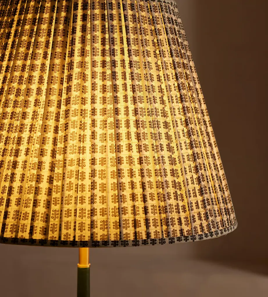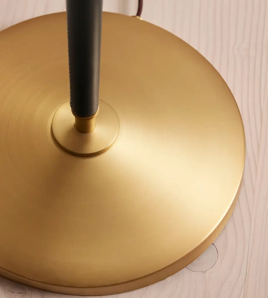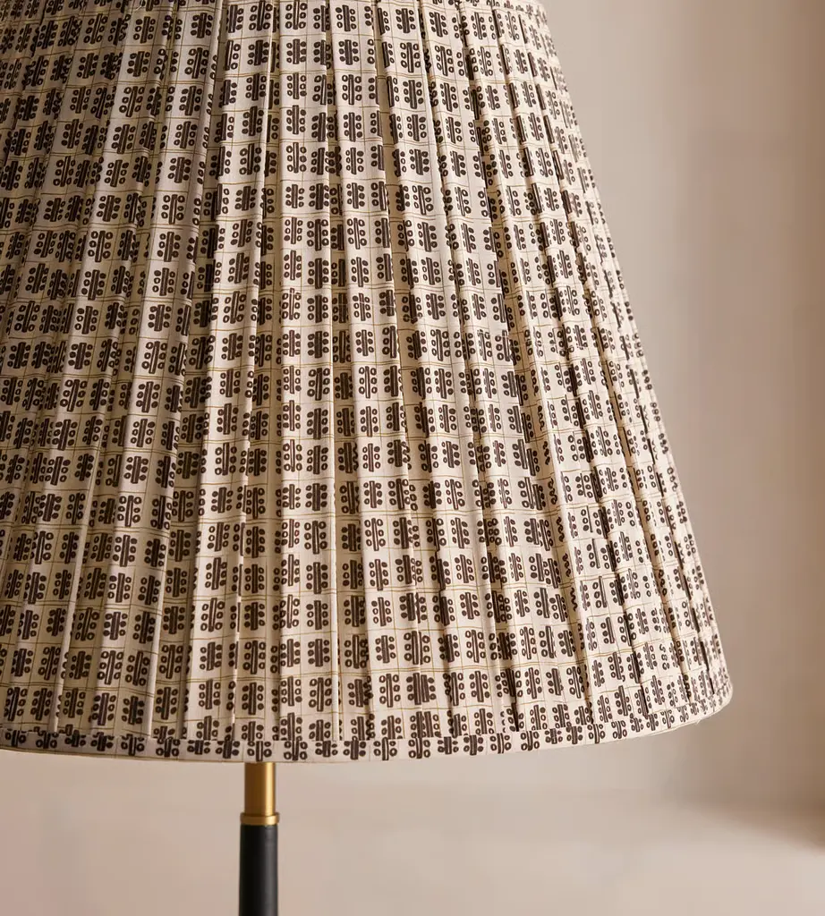 The sleek design of our Beckett floor lamp takes its cues from Soho House 76 Dean Street, where rich interiors can be found in one of Westminster's oldest townhouses. A leather-wrapped base is detailed with hand stitching for an artisanal feel, alongside a patterned drum shade designed exclusively in-house and an antique brass base. Made to emit a warm glow, place in any corner of the room or to light up a hallway.