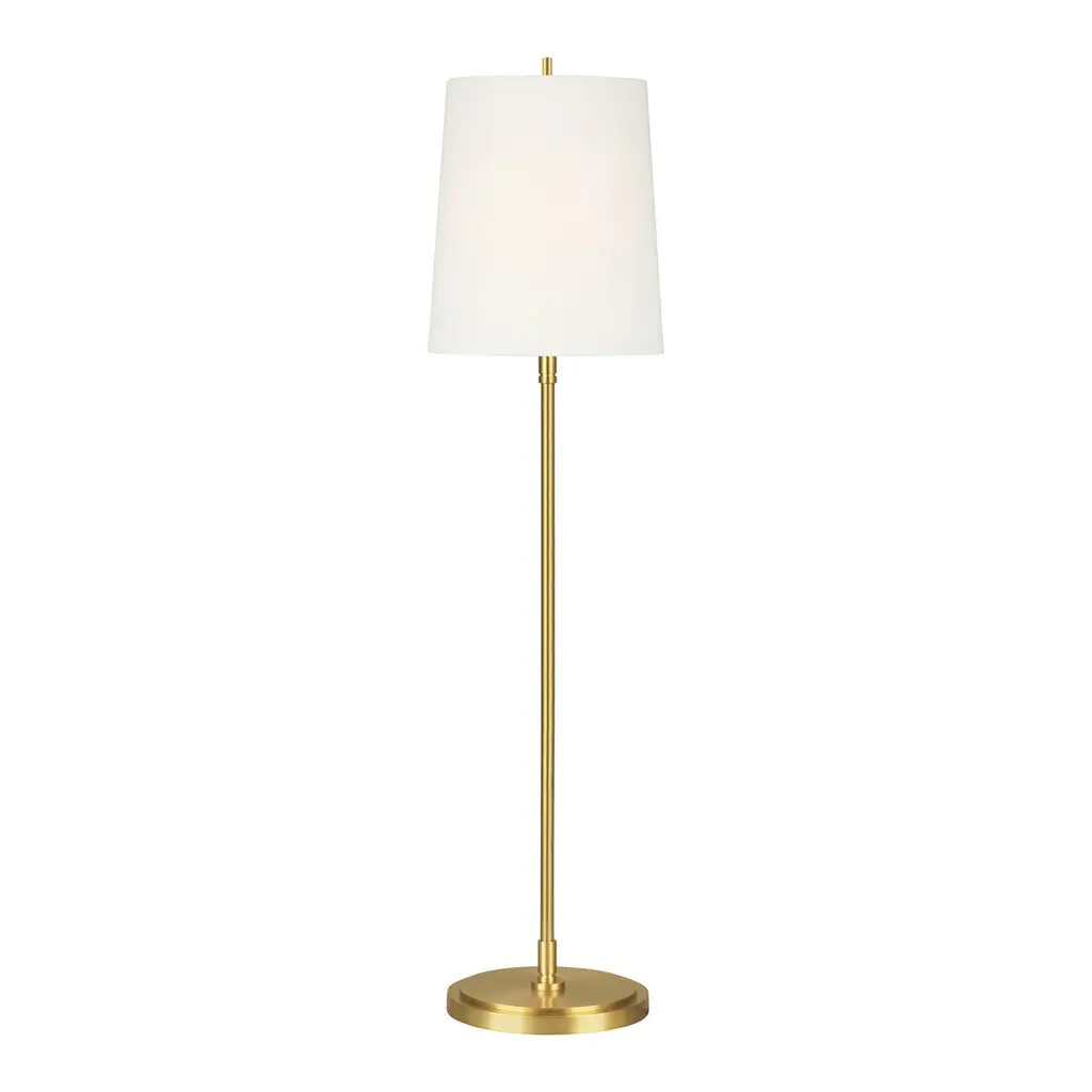 With its streamlined silhouette, lustrous brass finish, and white linen shade, this floor lamp is a welcome addition to traditional and contemporary rooms alike.Thomas O’Brien is a master at bridging traditional and modern, whether in his acclaimed interiors, his signature home furnishings, or his New York store, Aero. His designs for Generation Lighting make it easy for you to incorporate his distinctive aesthetic into your home.