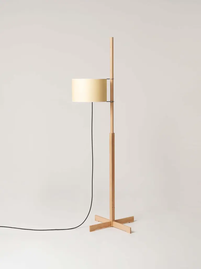 Beige and beech TMM floor lamp by Miguel MiláDimensions: D 50 x W 60 x H 166 cm.Materials: Beech wood, parchment lampshade.Available in 3 lampshades: beige, white and white with diffuser.Available in 5 woods: beech, cherry, walnut, natural oak and black oak.In a flourish of formal serenity and functional efficacy, Miguel Milá cleverly separated the three basic components of any lamp: the structure, the electrical parts and the shade. The light source rotates around the shaft and can be raised or lowered like a flag on a mast.Height-adjustable lampshade. The light is switched on/off by pulling softly from the cable.Santa & Cole is a small, independent and global editor of design products, with its roots in Belloch (Barcelona, Spain). We have been editing since 1985, when the company was first founded. By editing we mean preparing a work for the public domain, we mean adapting an item for everyone’s use. What a book editor does with stories, we do with objects.More than eighty creators have contributed to a rich catalogue of furniture and lighting products originating in very different contexts, by renowned designers such as Antoni Arola, Miguel Milá, André Ricard and llmari Tapiovaara.Acute and attentive to quality and detail, Santa & Cole outsources all of its industrial production to an extensive network of suppliers, mainly in Spain, but also in other countries such as Japan, where the washi paper for our Tekiò lamp is made.Our mission is to build, safeguard and disseminate knowledge through design objects. Objects whose quality is recognisable at the touch of a hand, and that enrich people’s lives, whether at home or in shared environments. Our philosophy is more modern than futurist and we are more intrigued by silence than by stridency.Our focus is not the present market, but the future one; not Barcelona, but the world; not fashion, but history.All our lamps can be wired according to each country. If sold to the USA it will be wired for the USA for instance.
