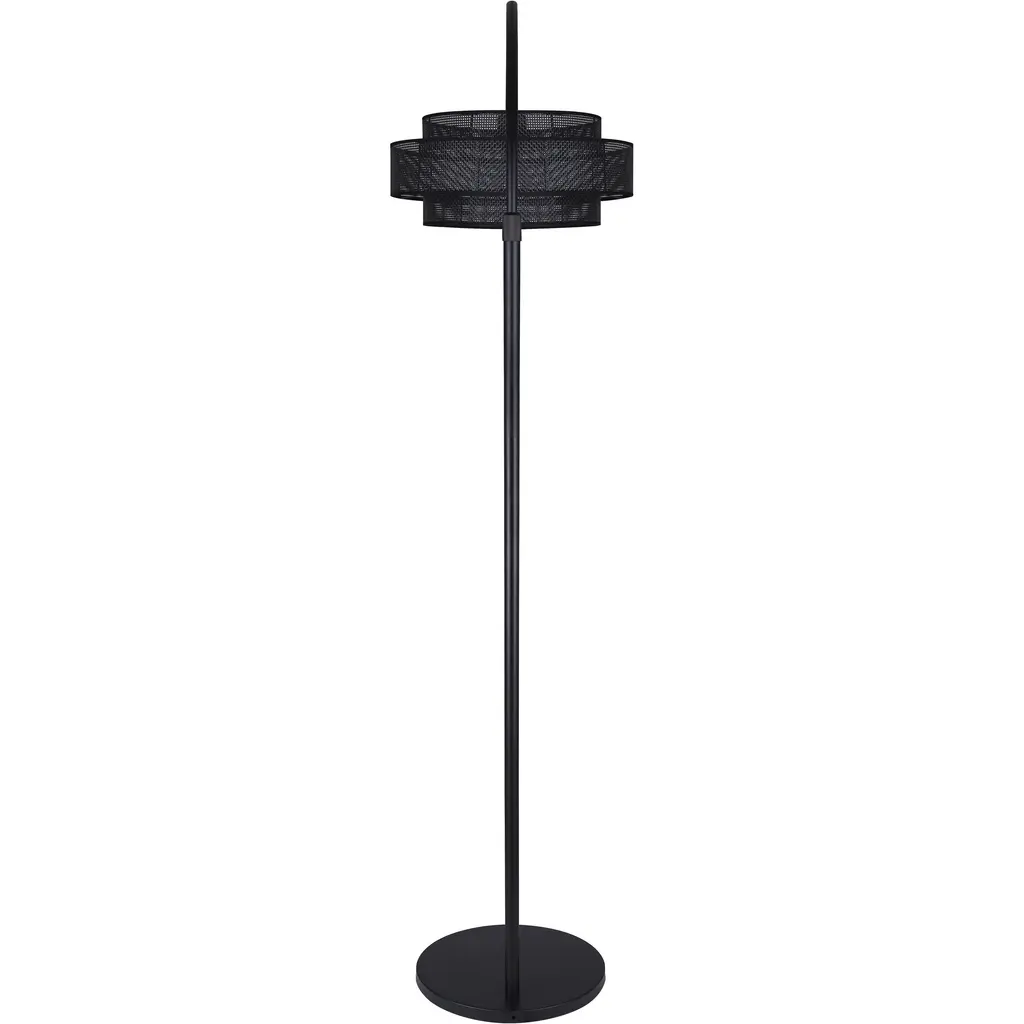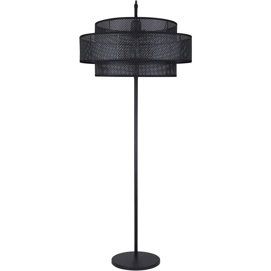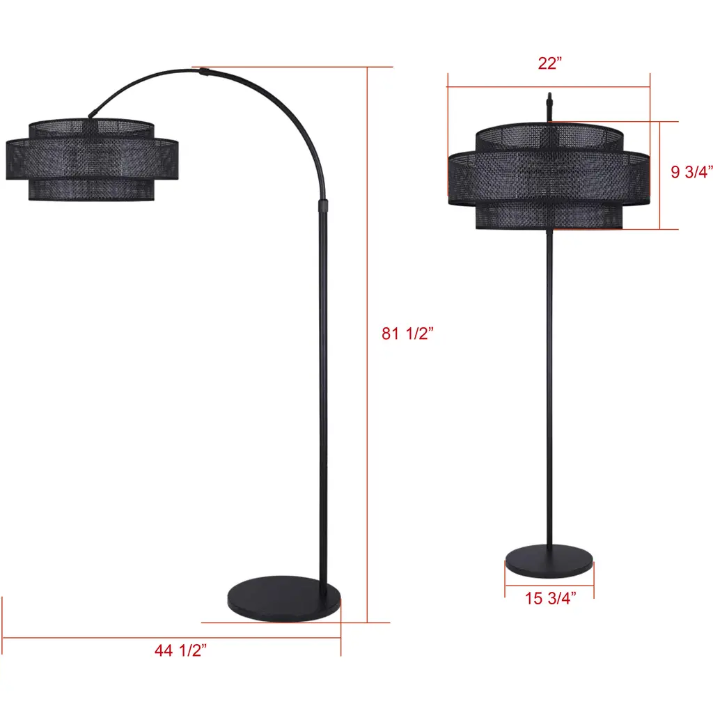 Introducing BELLAMY, a stunning 1-light floor lamp designed to elevate your living space with its captivating design. Featuring a black plastic rattan shade, BELLAMY adds a touch of sophistication and warmth to any room. This floor lamp boasts a 150W Type A bulb capacity and is equipped with a convenient tri-light switch for customizable illumination. With dimensions measuring 16.25 inches in width, 82 inches in height, and 40.75 inches in depth, BELLAMY stands tall as both a functional lighting solution and a stylish decor piece.