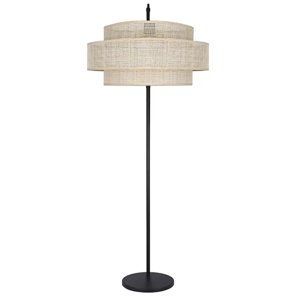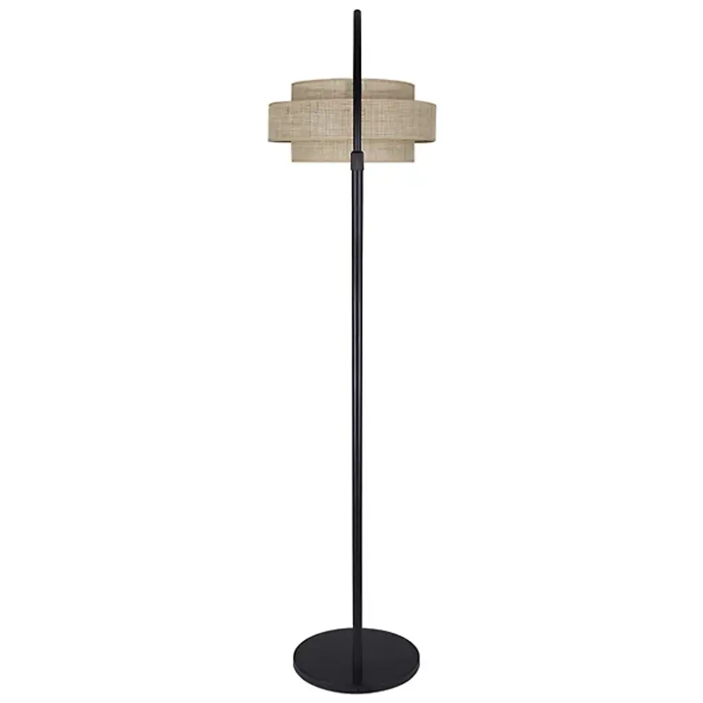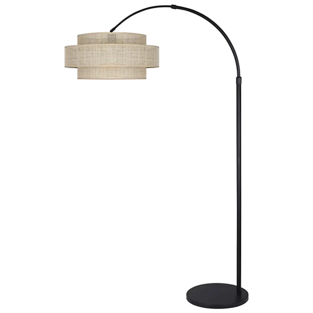 Enhance your modern home with the sophisticated Bellamy Arc Floor Lamp by Canarm. Designed with a unique double-layered drum shade, it offers softly diffused, nuanced lighting that adds ambiance to any space. The sleek black finish and sculpted design blend elegance with a light, airy feel, making it a perfect fusion of classic charm and contemporary style. Versatile and stylish, this lamp brings warmth and character, enhancing the aesthetic appeal of any room.