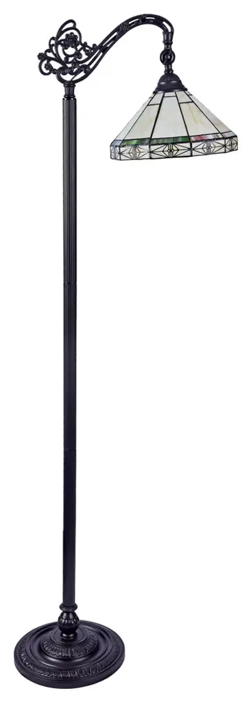 BELLE, a Tiffany-style Mission design 1-light reading floor lamp features a bronze finish that will complement many decors throughout your home. Hand crafted from individually hand cut pieces of art glass that will add color and beauty to any space. Main colors are beige and green. Handcrafted using the same techniques that were developed by Louis Comfort Tiffany in the early 1900s, this beautiful Tiffany-style piece contains hand-cut pieces of stained glass, each wrapped in fine copper foil.(1) 100 Watt max E26 Type A Bulb (not included)Foot Switch on cord40 pcs glass cutDownlightIndoorSince these are hand crafted products, the exact color of glass pieces may vary. Colors of the glass will appear darker and less vibrant when not illuminated. Handmade glass will vary from one piece to the other; glass made at different times will also vary. Light bulbs used in lamps or ambient lighting may affect the appearance of the products. Stained glass product has been protected with mineral oil as part of the finishing process. Please use a soft dry cloth to remove any excess oil.