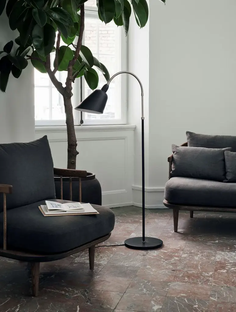 With the Bellevue Lamp, Danish architect and designer Arne Jacobsen embodies the minimalism of the Modernist Movement with the functionalism of Bauhaus. Viewed as the driving force behind Danish Modernism, Jacobsen’s preference for graceful lines and simple, organic forms are readily recognisable in the Bellevue lamp. The re-launch of this iconic lamp involves a return to the original Bellevue shape.EnvironmentIndoorProduction processThe shade is spun into its distinct shape from a single piece of metalMaterialSatin polished and lacquered brass or satin polished and lacquered brass with lacquered aluminium and steel, cast iron base, 2 meter fabric cord with on-off switchColoursBlack & SteelBlack & BrassWhite & BrassSatin Polished BrassVoltage220-240V – 50HZLight source & energy efficiency classE27 Max 25 WattThe luminaire is compatible with bulbs of energy class: A++ – EBulb is not includedCord length200cm/78.8inCertificationsCE, IP20, Class IICleaning instructionsClean with soft dry cloth. Always switch off electricity supply before cleaning
