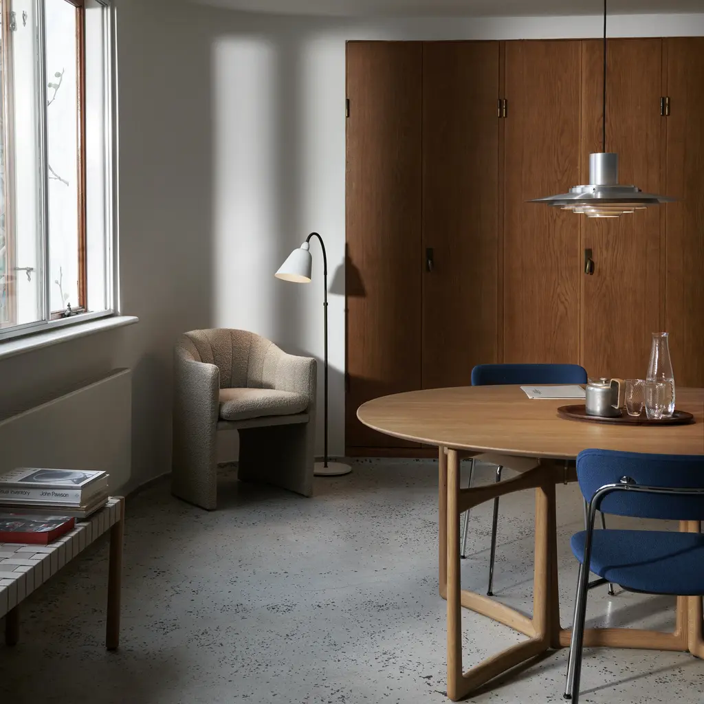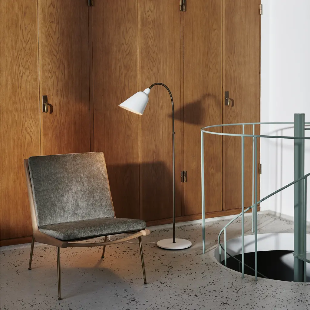 The Bellevue AJ7 Floor Lamp from &Tradition brings together the timeless allure of minimalist Danish design with the functionalism of Bauhaus. Its spun metal shade, slim adjustable arm, and sturdy base form a graceful silhouette that will blend seamlessly into any interior. Enjoy a chic, sophisticated look with this classic lamp, now updated with an easy-to-use on/off switch on the cord. Highlights