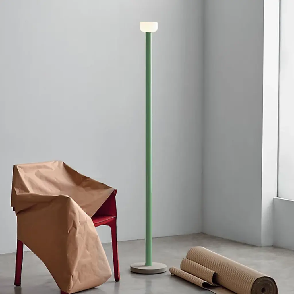 At your service, any time of day. The Bellhop LED Floor Lamp from Flos not only warms you up at night but also gives your rooms a charming, comforting presence that conjures a smile. Designers Edward Barber & Jay Osgerby’s gave it its name as a callback to the trusty hotel attendant and the table bell. The play on words and the sophistication of the piece underlines the balance of technical expertise, innovative thinking, and poetry in the duo’s work. The floor lamp draws you in with a slender figure made in aluminum. The blown glass shade delights like the classic tone of a tabletop bell. This charming shape lets out a comfortable light inspired by the warm glow of a candle.